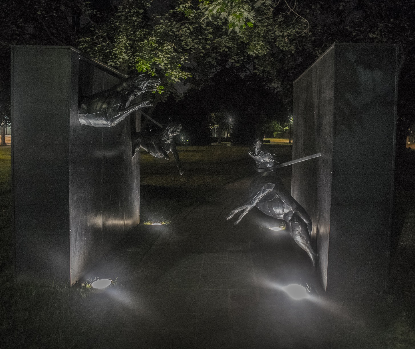 Following the Vulcan stop, we headed toward the Kelly Ingram Park. It’s a beautiful, moving park focused on Civil Rights, but 10:30pm on a Thursday night (or any night) is not the time to stop there. After dodging some shady characters, we were able to see the “Dog Attack” sculpture by James Drake. It is a disturbing and unsettling sculpture designed to give visitors a sense of what African Americans must have felt in the early 1960s, when Birmingham Officials (most notably, Bull Connor) used dogs to intimidate and, at times, maul African Americans.