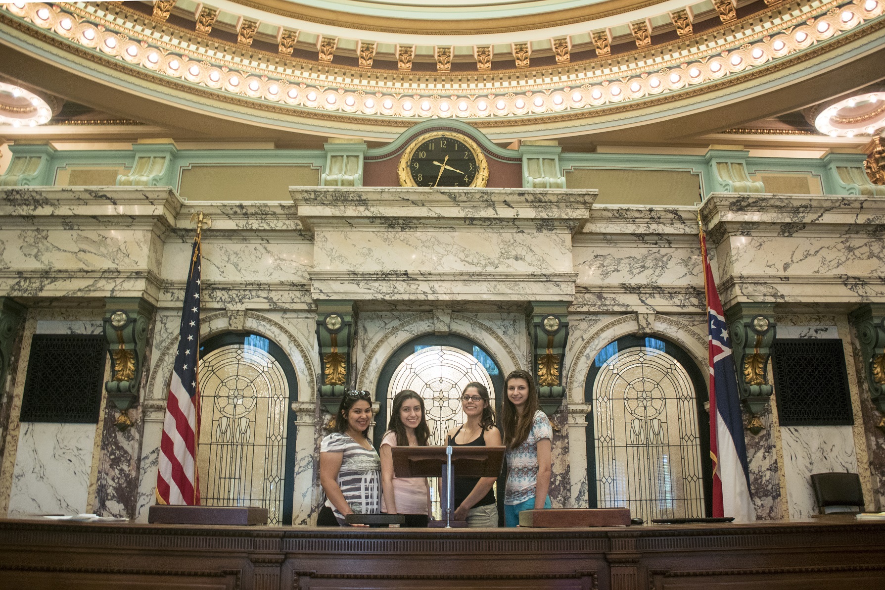 The tour was expansive, covering the entire capitol. The first floor holds the hall of governors, and the second floor holds the original Supreme Court Chamber which now serves as the Senate Committee Room. On the third floor we found the offices of the Governor, the Lt. Governor, the Speaker of the House, and both the House and Senate Chambers. We got to spend time in both legislative chambers, and the setting was beautiful.