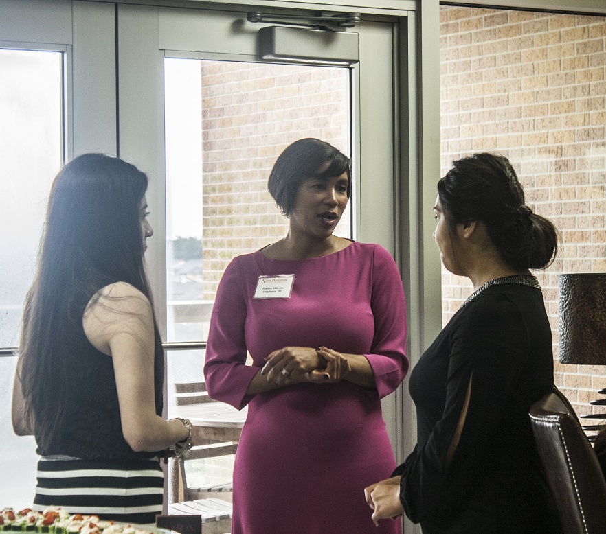 Ashley Stephens graduated from SHSU with a degree in POLS in 2000, but she returned last month as a Distinguished Alum. Since graduating, Ms. Stephens has worked for Speaker of the House Nancy Pelosi and, more recently, President Barack Obama. Although she was a featured speaker at the Alumni gathering, she joined POLS students for a smaller gathering in the Holcombe Room.