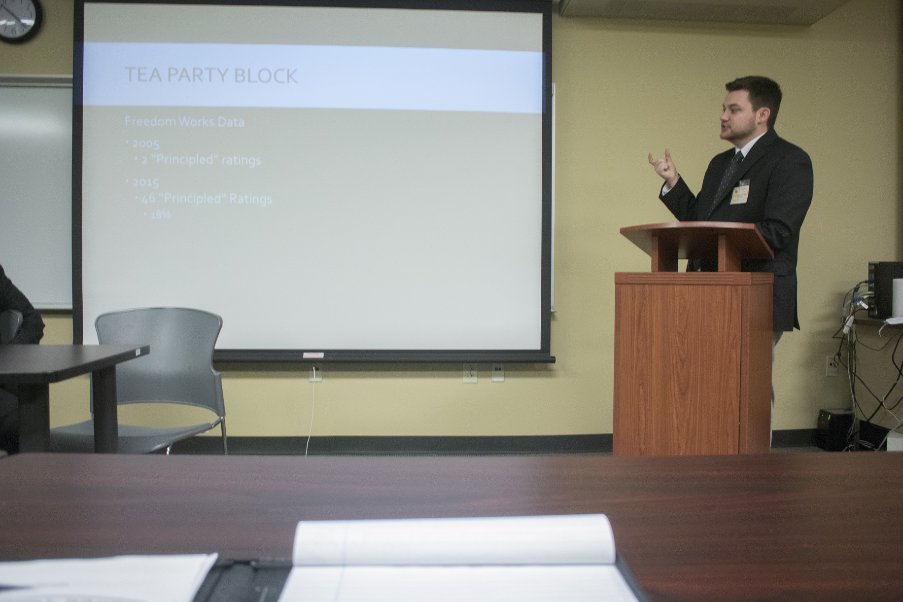 The session began with a presentation on the Tea Party’s influence on the current Republican Party. With a most timely topic in regards to our political atmosphere, Tyler Harrison of the University of Arkansas at Monticello offered an in depth analysis of the Tea Party’s freedomworks rating system.