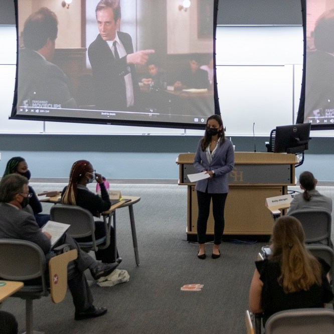 They then answered some questions about jobs and how we might work our way up in positions, and gave us more knowledge of everything each position does. When they were done with their portion of the information about the office, they showed us a slide show with the “10 Commandments of Cross-Examination” as well as clips from films featuring cross examination.