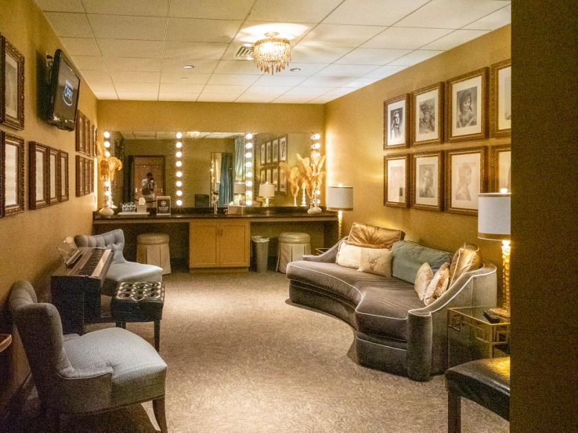 Each artist performing could choose whichever room they desire, but celebrities were mainly gathered in the “Family Room” located outside of the dressing rooms. This middle room had plenty of seating and a beautiful Archie Campbell mural to admire the Opry and Hee Haw cast that shot 13 episodes on stage.