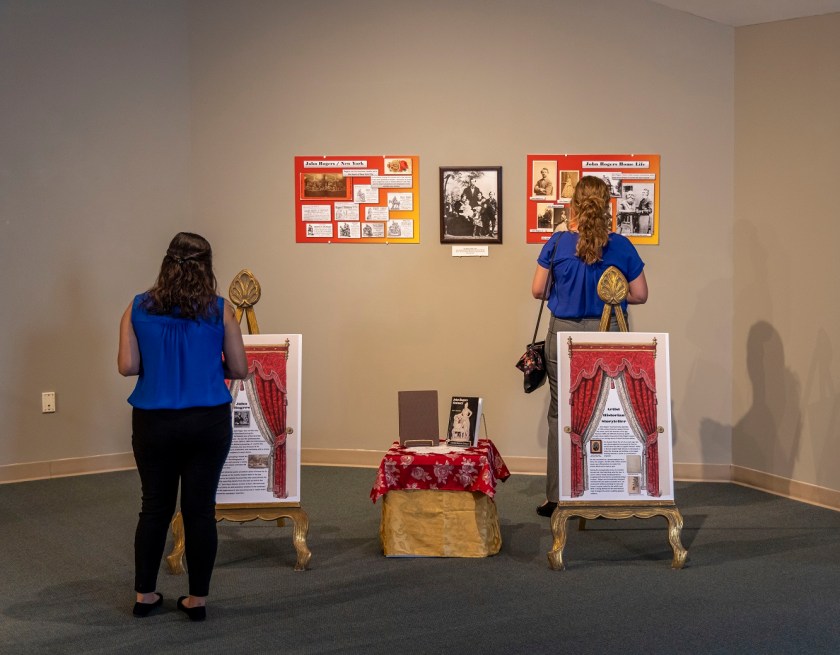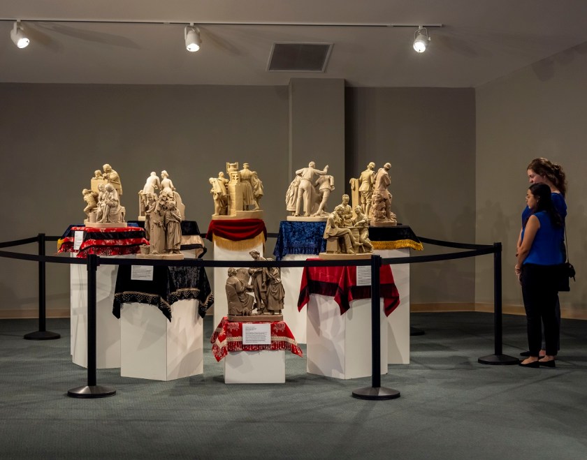 This past Tuesday the Sam Houston Memorial Museum (SHMM) opened their first art exhibit of the school year, so, of course, we were there! The Museum exhibit featured the works of 19th Century artist John Rogers, whose collection of Victorian Sculptures, which the SHMM owns. The Museum did a great job of providing informational placards and other designs of the Victorian period, transporting us back to another time.