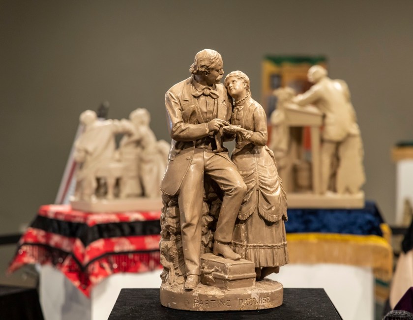 One of the more interesting facts regarding Rogers’ sculptures are the prices. For example, “Parting Promise” was priced at $12.00 in 1870. Although $12.00 was a lot more costly 150 years ago, it was still much less expensive than the typical sculpture, allowing middle-class families to own art.