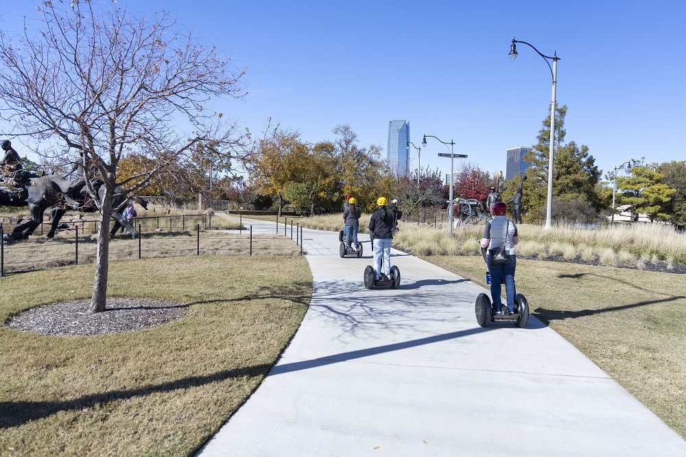 Leaving Bricktown, we rode our Segway’s fast and fluently towards downtown Oklahoma City. We were welcomed by the view of tall glass skyscrapers and modern architecture.