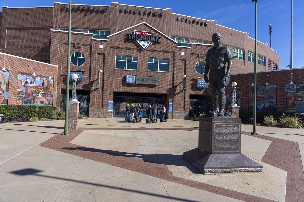 The beginning of the tour consisted of a visit around Bricktown. Mr. Skip informed us about the Sonic Headquarters, Cincinnati Park and Dodger stadium where we saw sculptures of many famous baseball players, such as Mickey Mantle!