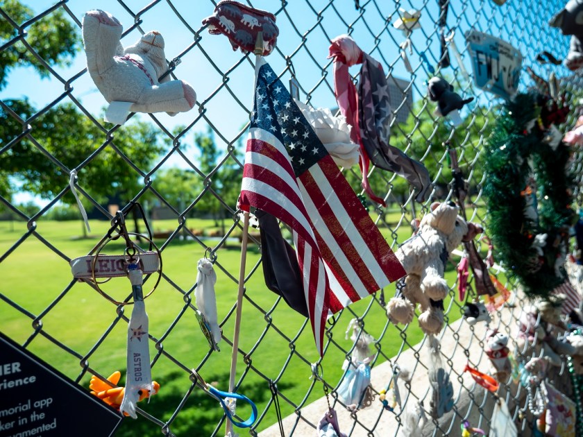 And the memorial continues. Outside the memorial proper is a fence with some items from the families of the victims (flags, wreaths, pictures, and stuffed animals) in memoriam to their lost loved ones.