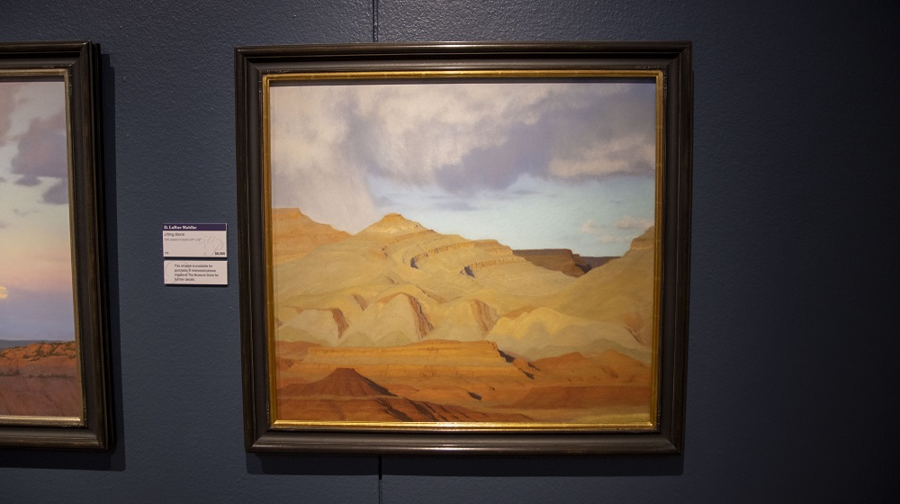 The painting of canyons and national parks especially reeled us in. Specifically, Ed Mell and his Canyon Flow collection were some of Stephanie’s favorites. Mell’s art-deco-ish treatment of canyons, big skies, and sunsets in his unique style made them truly stand out.