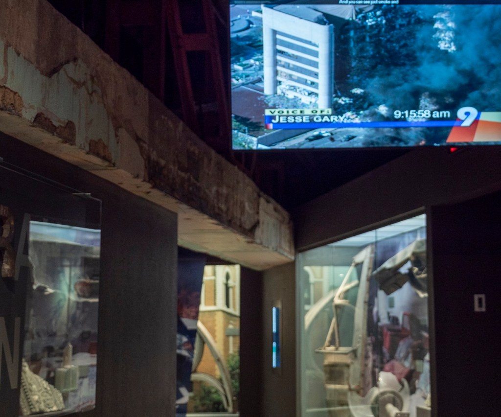 …support letters written by children to survivors and families. Much space is dedicated to images of what you would have seen at the location, or on the news from around the world. One display includes all the different news stations playing at once, creating a movie-like moment where you can feel the impact of the event just by listening.