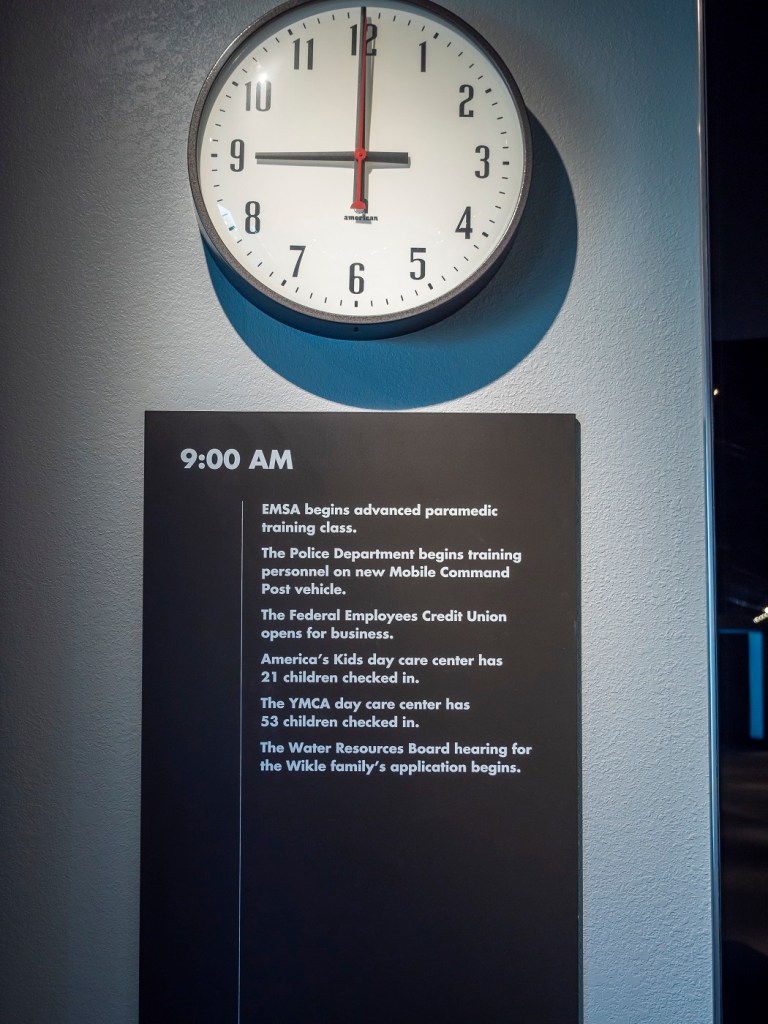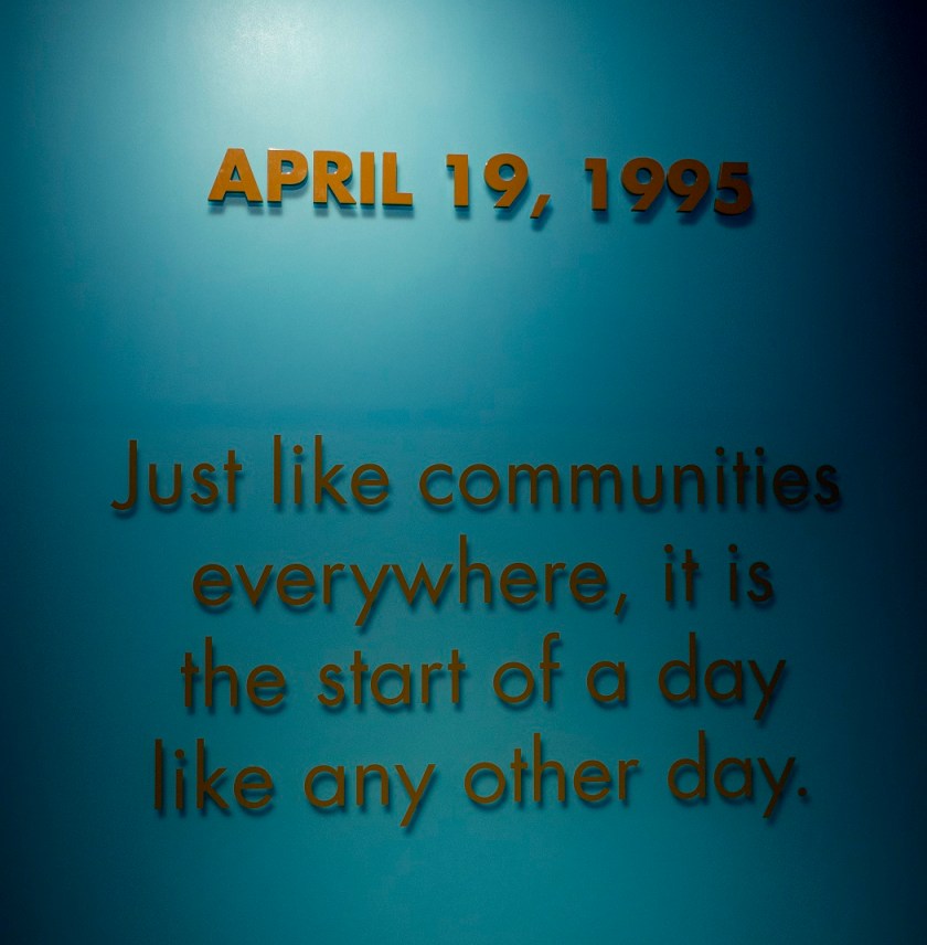“Just like communities everywhere, it is the start of a day like any other day.” The museum exhibits start off with an innocuous, yet ominous, greeting. We saw images of all the different “everyday” events going on throughout the city, with everyone walking through their normal, mundane lives, the usual hustle and bustle of a city’s downtown.