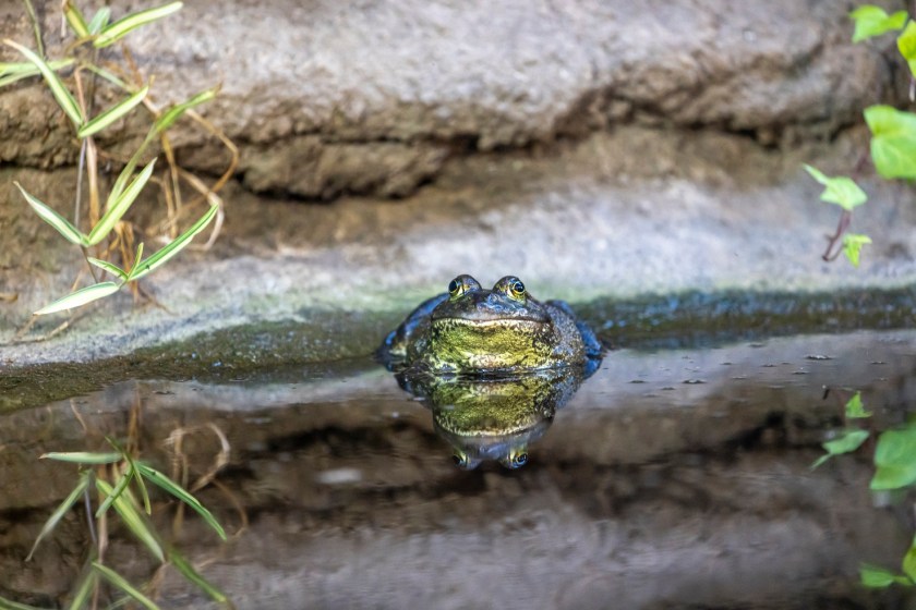 While in the room, we found it amusing that a turtle and a frog were playing a game of copycat, as humongous bullfrogs sat idle and lurking in the murky water.