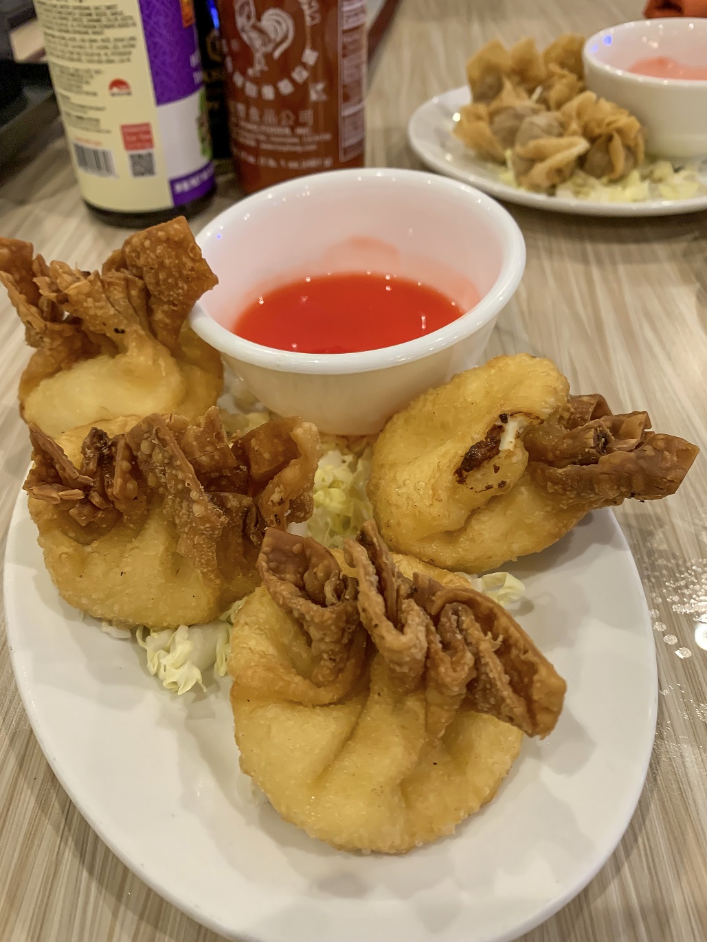 We started with an assortment of appetizers: Cheese puffs, steamed dumplings, and fried wontons. My favorite was the steamed dumplings, but all of the appetizers where amazing.