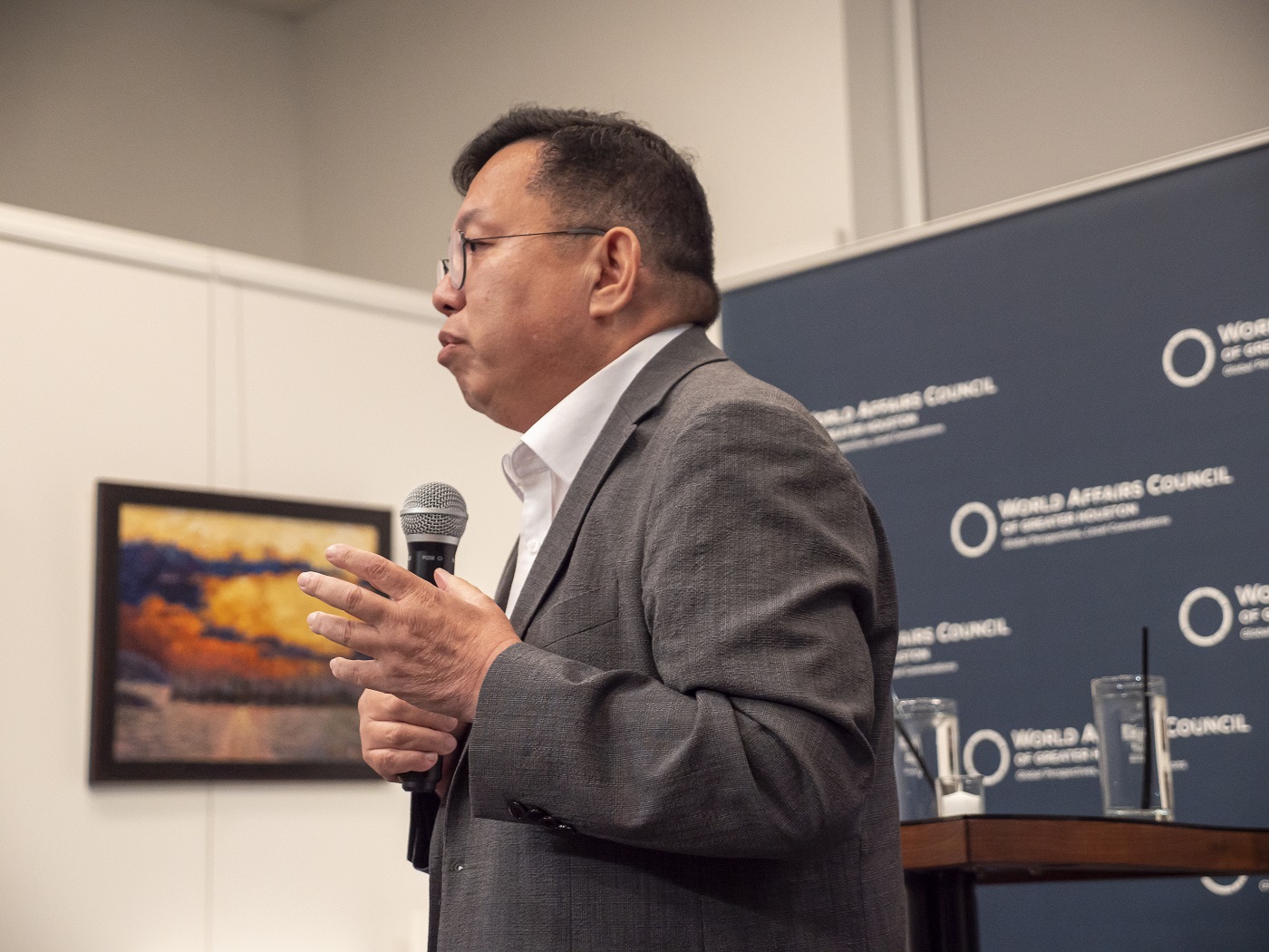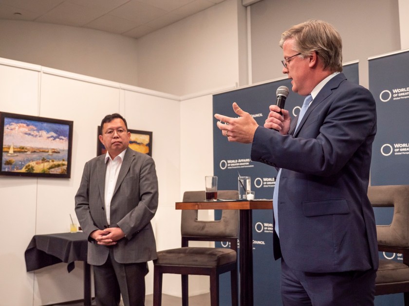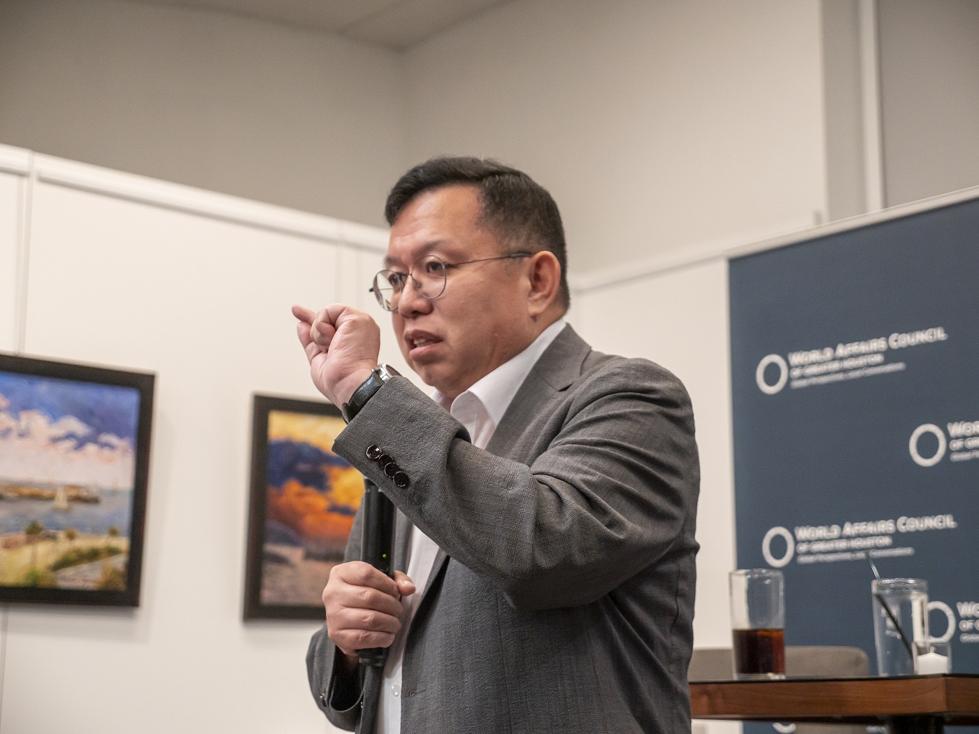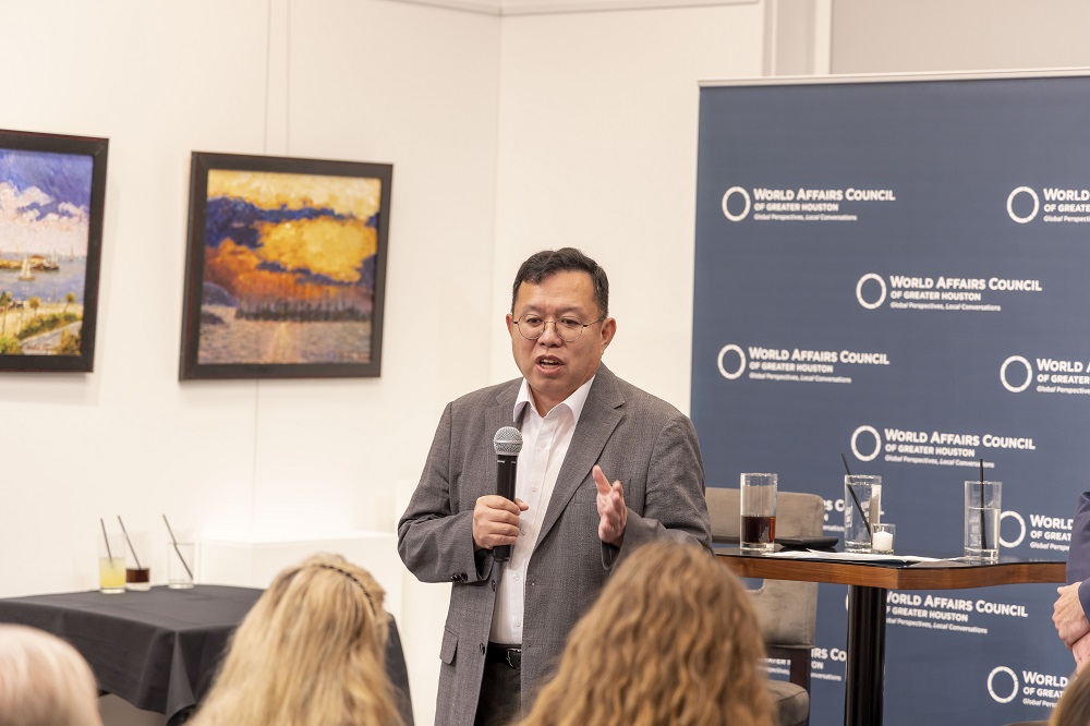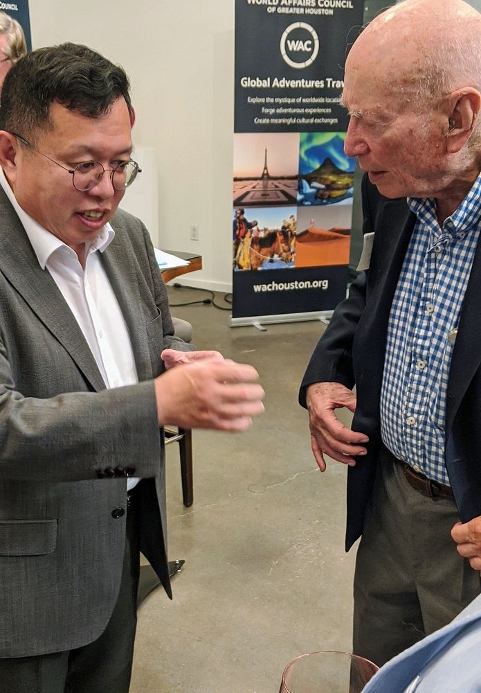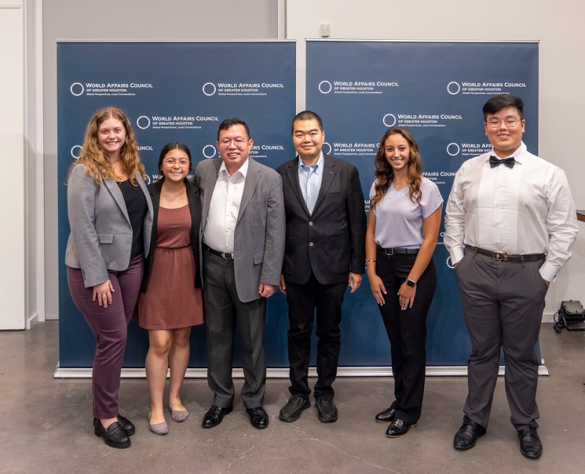 For the LEAP Ambassadors, there is no better mid-week venture than to the Glades Art Foundation in the Woodlands for an always amazing World Affairs Council event. This time around, we were fortunate enough to be accompanied by two guests: Hongjin Jeon, (aka. Andrew) a student in Professor Yawn’s Texas Government class and Dr. Lei Duan, the professor for my Modern Asian History course.