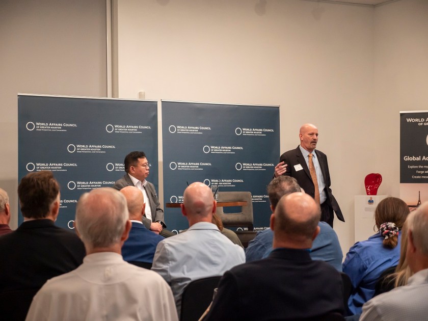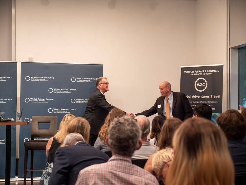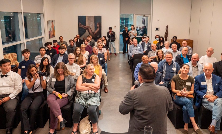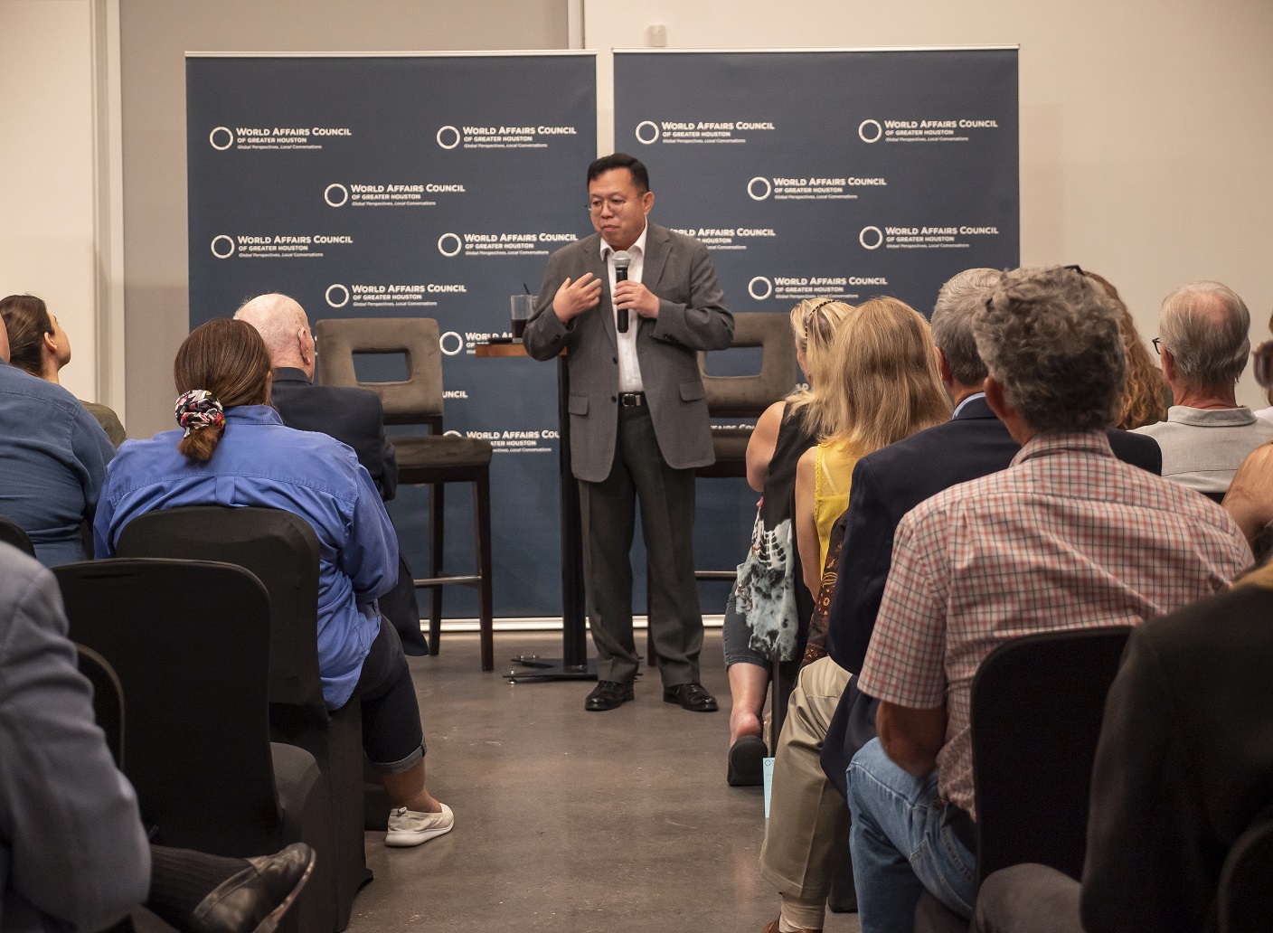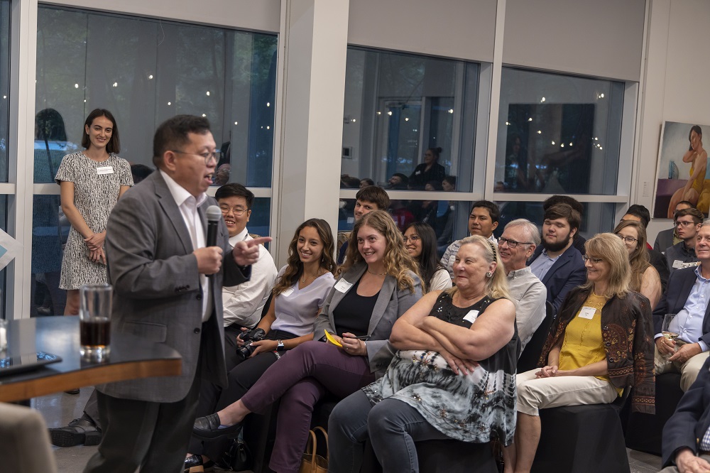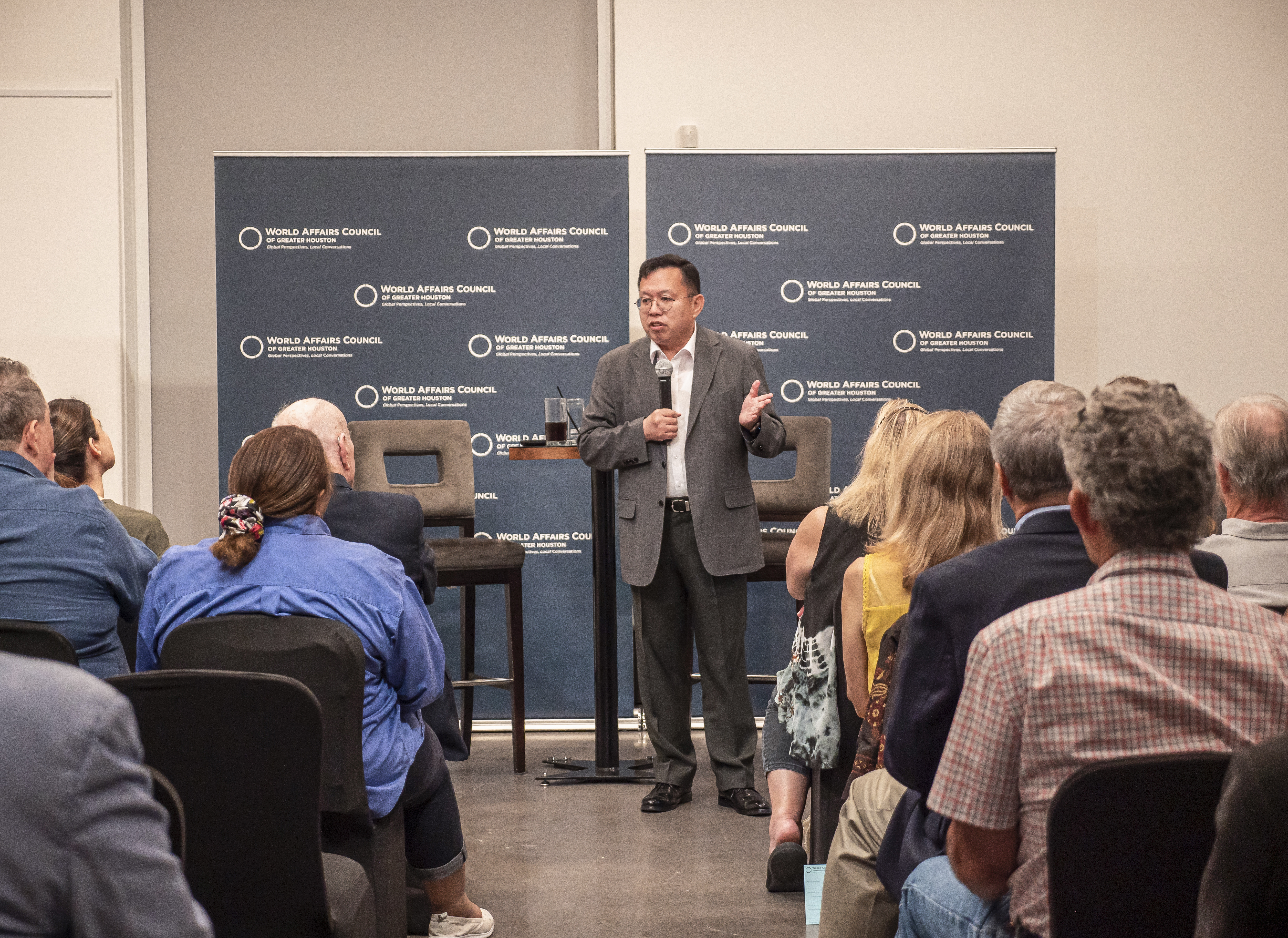 For the LEAP Ambassadors, there is no better mid-week venture than to the Glades Art Foundation in the Woodlands for an always amazing World Affairs Council event. This time around, we were fortunate enough to be accompanied by two guests: Hongjin Jeon, (aka. Andrew) a student in Professor Yawn’s Texas Government class and Dr. Lei Duan, the professor for my Modern Asian History course.