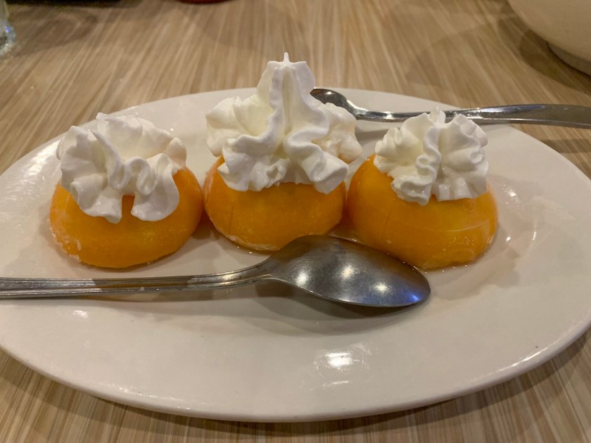 Everyone loved their meals, and we left almost no room for dessert! Because Tuesday was Yvette’s birthday, Professor Yawn, let Yvette pick the dessert, and she chose Strawberry and Mango mochi. The mochi was plated beautifully, and everyone enjoyed the sweet treat!