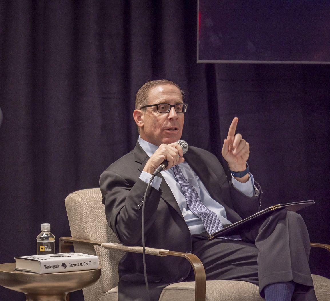 Also of interest was Graff’s discussion of how much the movie All the President’s Men impacted our understanding of history and politics. He says many Americans were disappointed when “Deep Throat” was finally revealed in 2005, and the real-life character, Mark Felt, didn’t look more like Hal Holbrook. Also, Jason Robards, who portrayed WAPO Editor Ben Bradlee in the film, would tap his ring finger on the table or other surfaces. That was his invention, not something Bradlee actually did. That is, until Bradlee saw the film. After seeing Robards tap his ring finger, Bradlee adopted the mannerism!