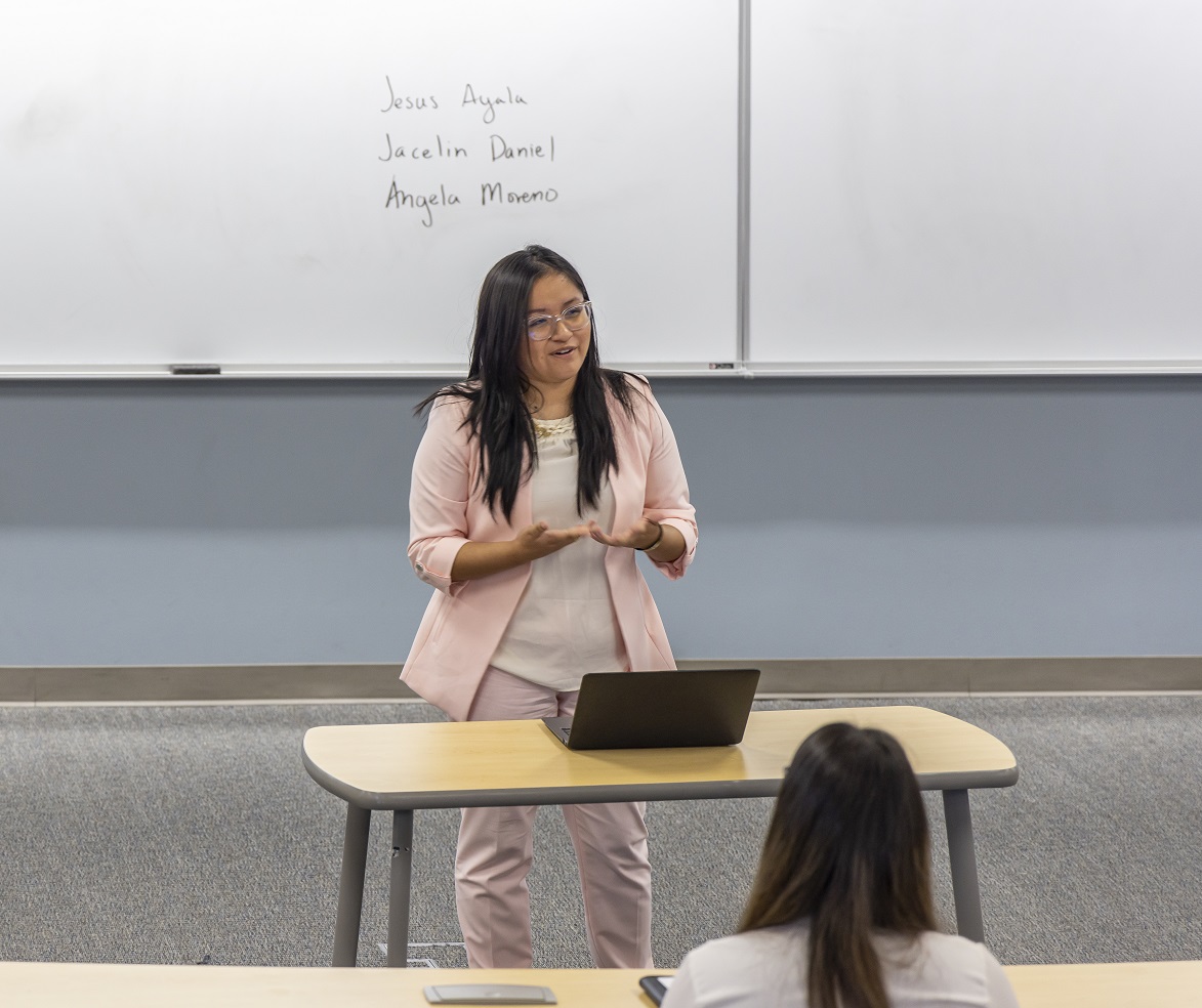 For Vice-President of Membership, we had three candidates: Jesus Ayala, Jacelin Daniels, and Angela Moreno. Each were given three minutes to discuss their reasons for running, and they all did well.