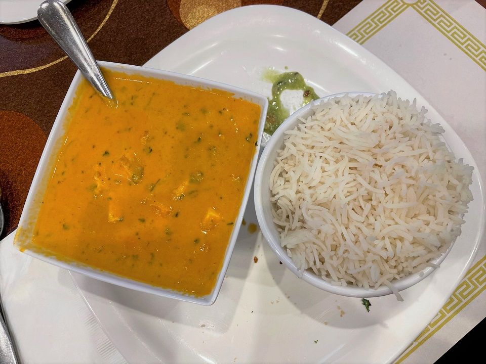 Morgan and Riya both had curry-based meals; Morgan had the Saag Panner, and Riya had a Chicken tika. They both loved their selections!