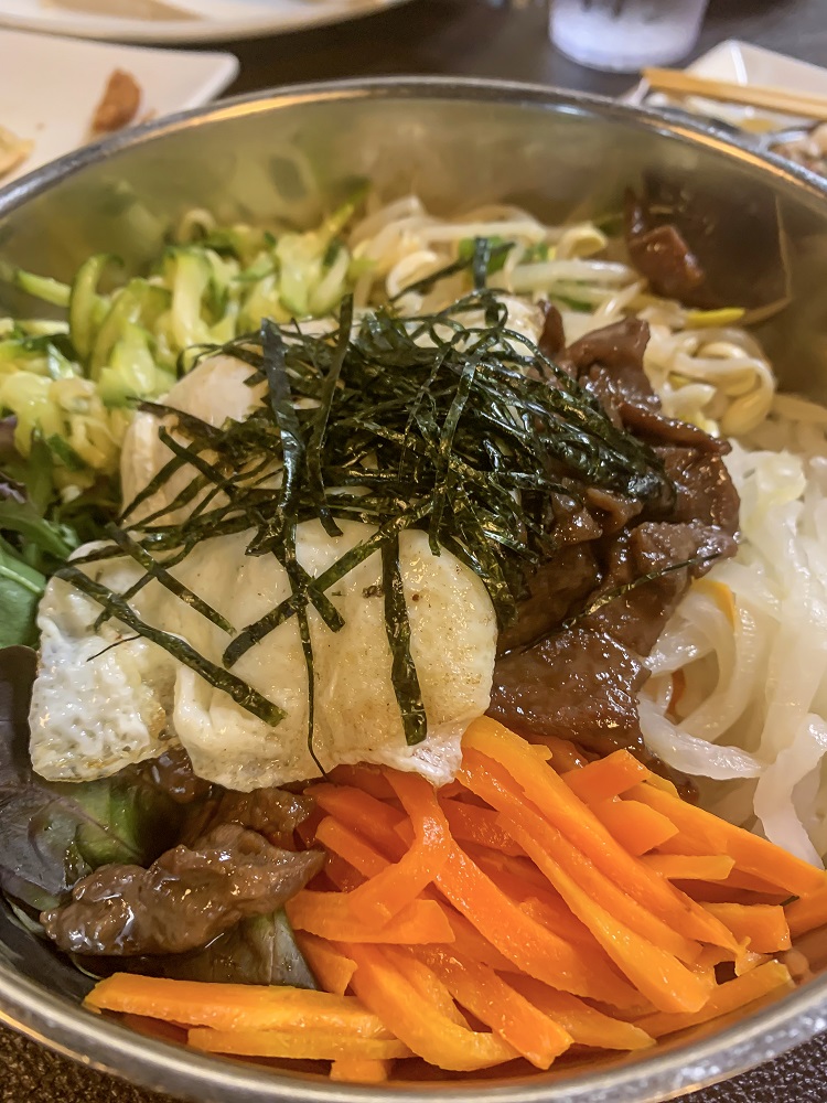 We ordered a few samplers such as the seafood pancake, which included vegetables and, to our surprise, octopus. We each got a traditional Korean dish such as the BiBimBap, which is a bowl of rice that comes with an assortment of vegetables and beef on top. I ordered the spicy seafood which came with an array of different sea creatures that most other restaurants might not have included. We sat around talking for so long that they brought us some cinnamon and ginger tea which was a wonderful cap to an entertaining and educational evening.