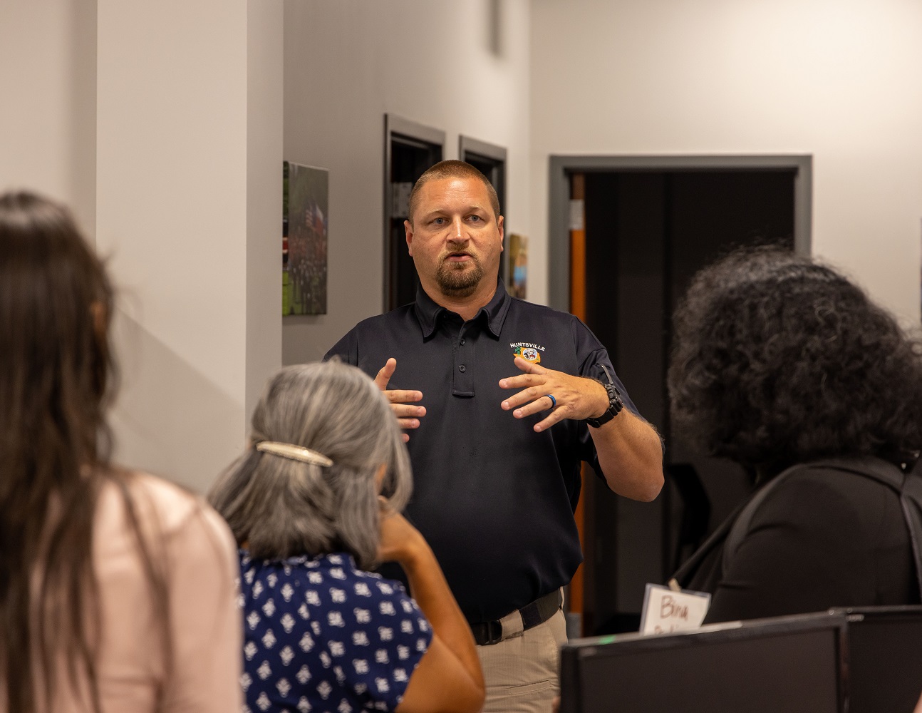There was no better way to kick off our newest LEAP Program, Beyond Bars, than with a back-stage tour of the Huntsville Police Department led by Corporal David Warner. Starting us off was Lieutenant Curt Landrum, who told us the stories behind the artifacts, photos, and mementos that can be found in the waiting area. These included photos of all the chiefs, equipment from back in the day, and the “honorary” shovel used for the groundbreaking.