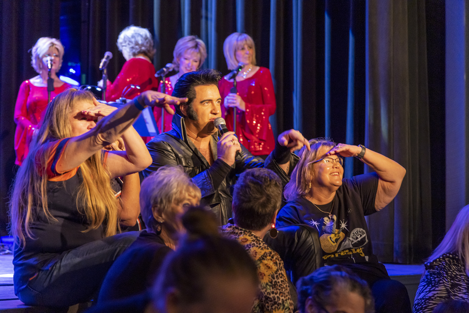 Stealing the thunder of the night, was Travis Powell, as he came out and performed in his all-black leather suit for the first half of the show. . . performing crowd favorites, including Suspicious Minds, Jailhouse Rock, and Can’t Help Falling in Love with You.