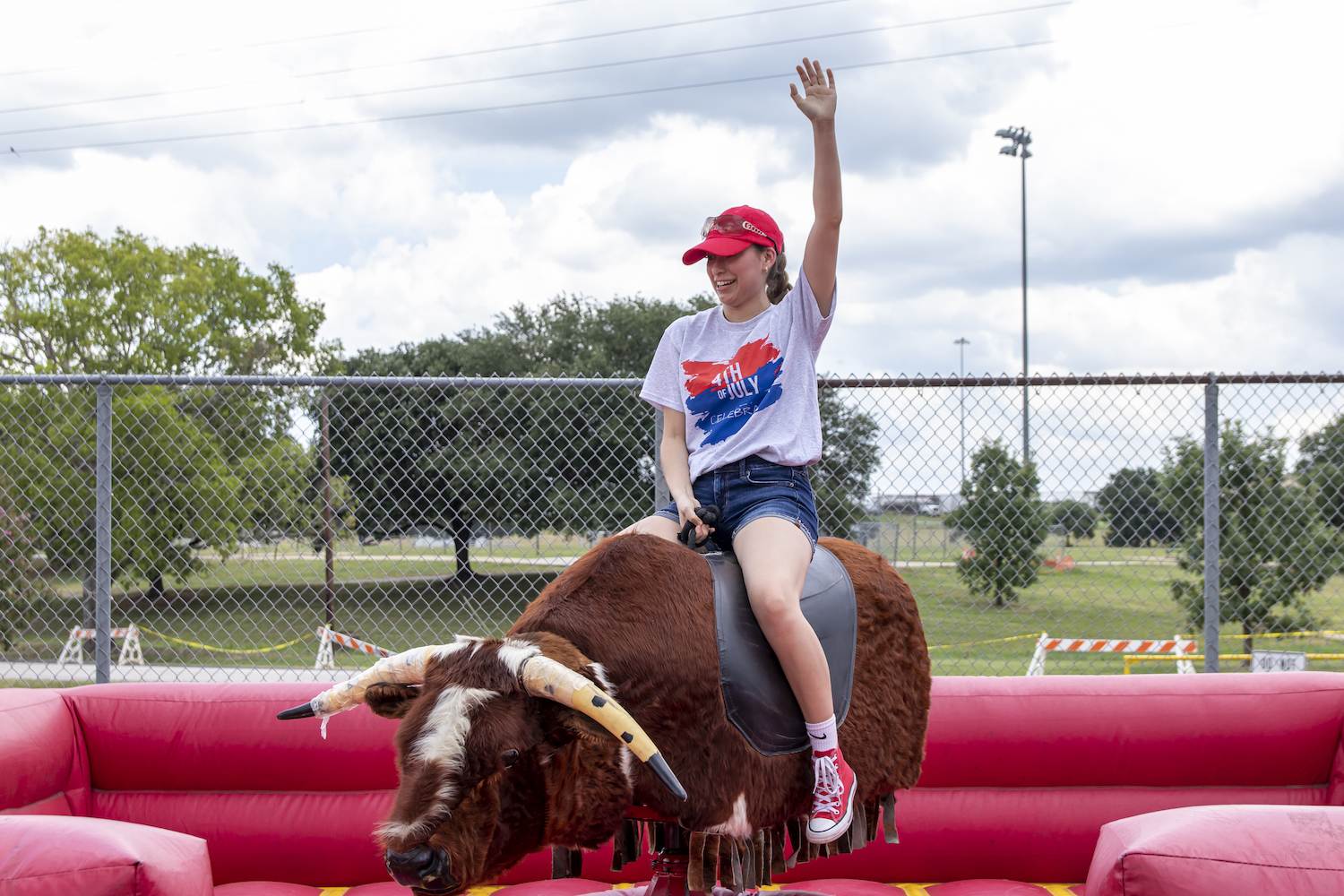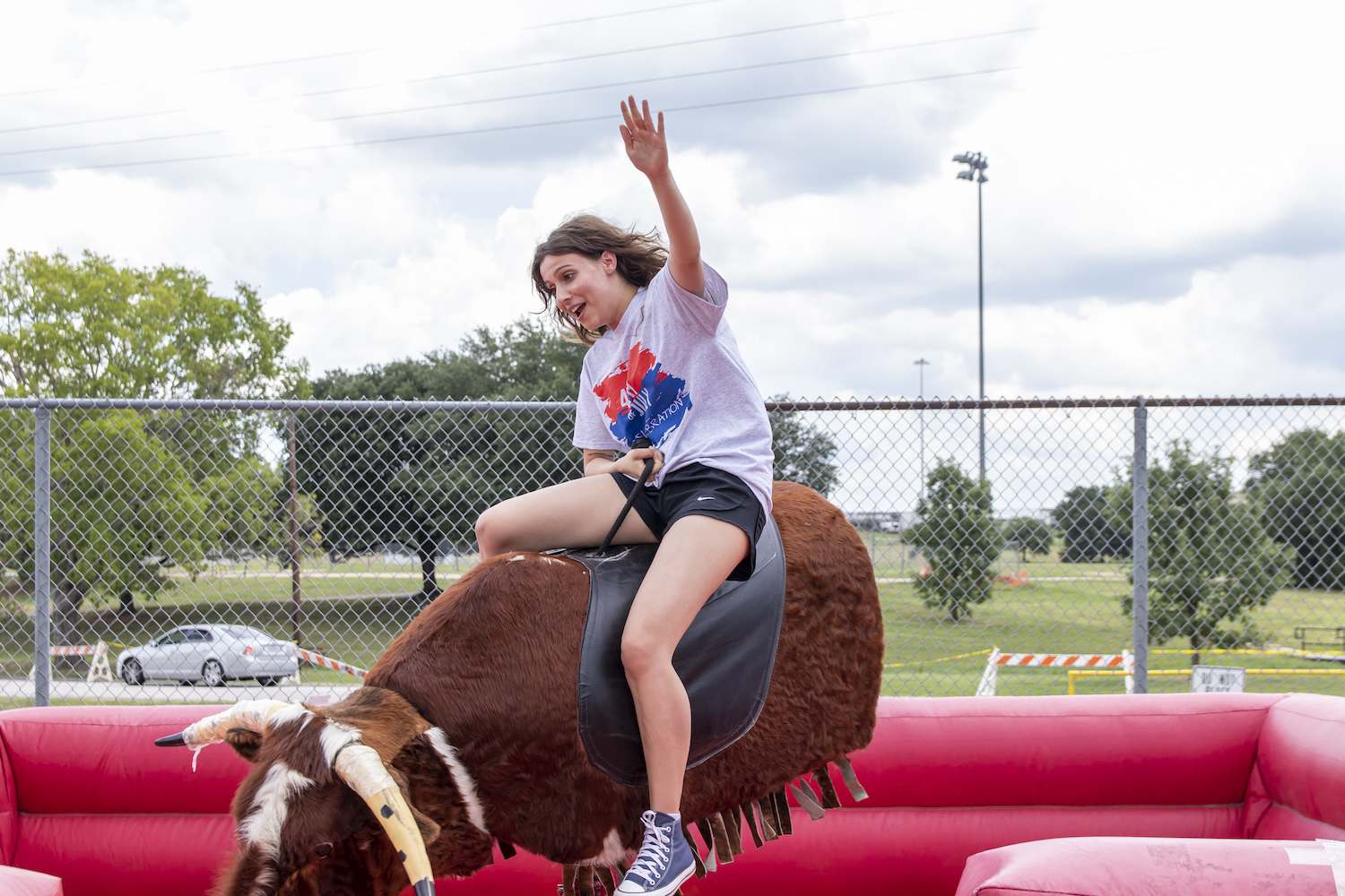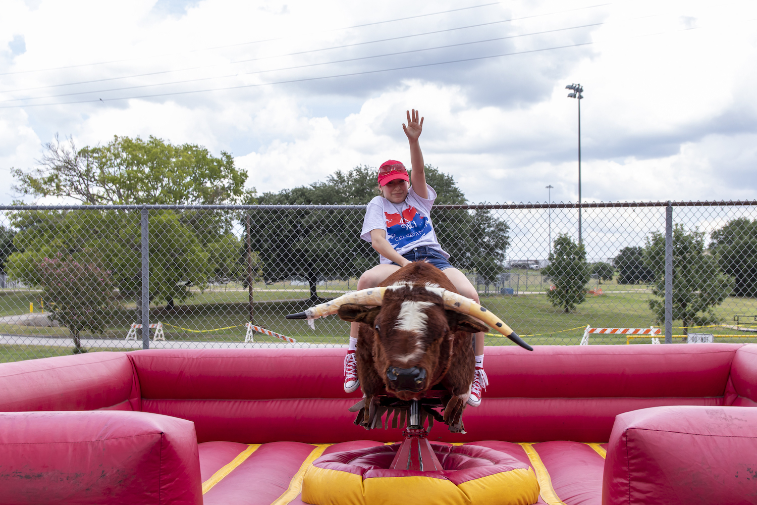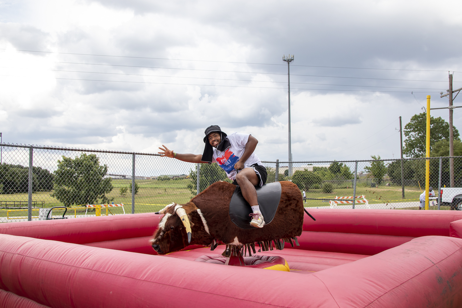 Filled with altruistic motives, LEAP Ambassadors did do a couple of test runs on the mechanical bull and in the bouncy houses…just to ensure the equipment was working properly.