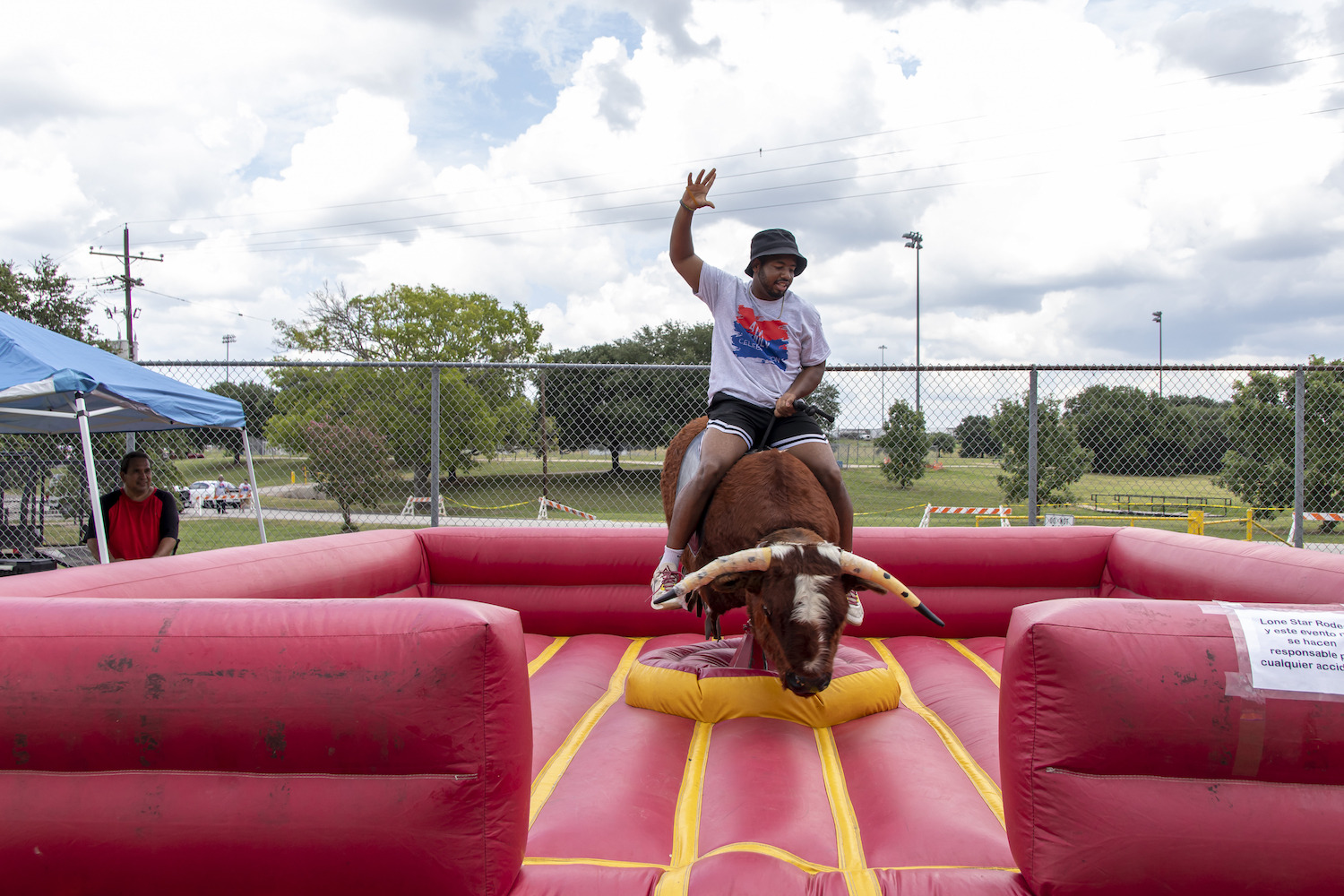Parks does this program annually, but it is a lot to put on. There is face-painting, bouncy houses, a dunking booth, a mechanical bull, balloon artists, a watermelon-eating contest, and a selfie station.