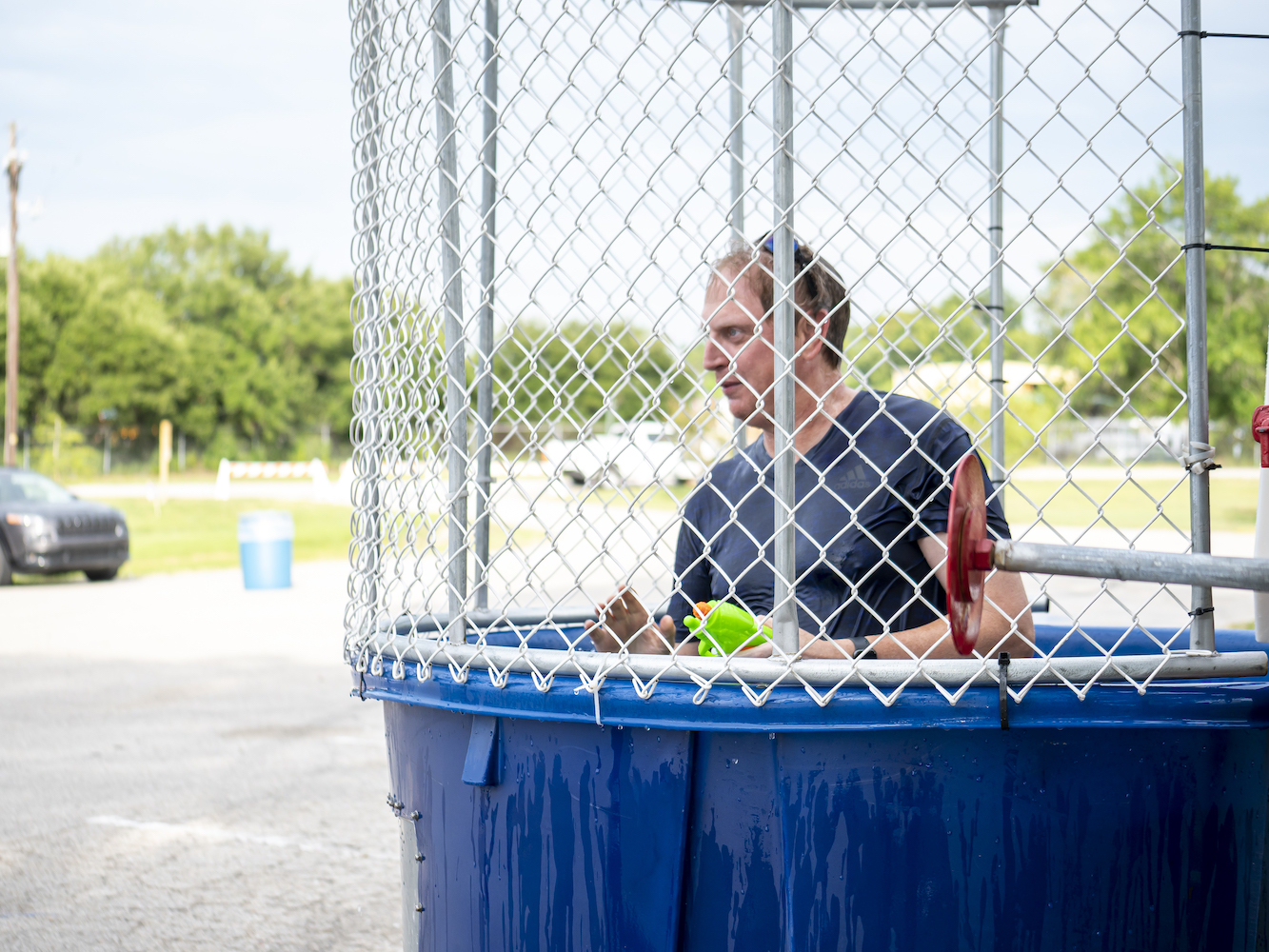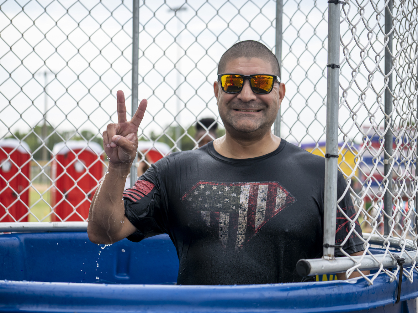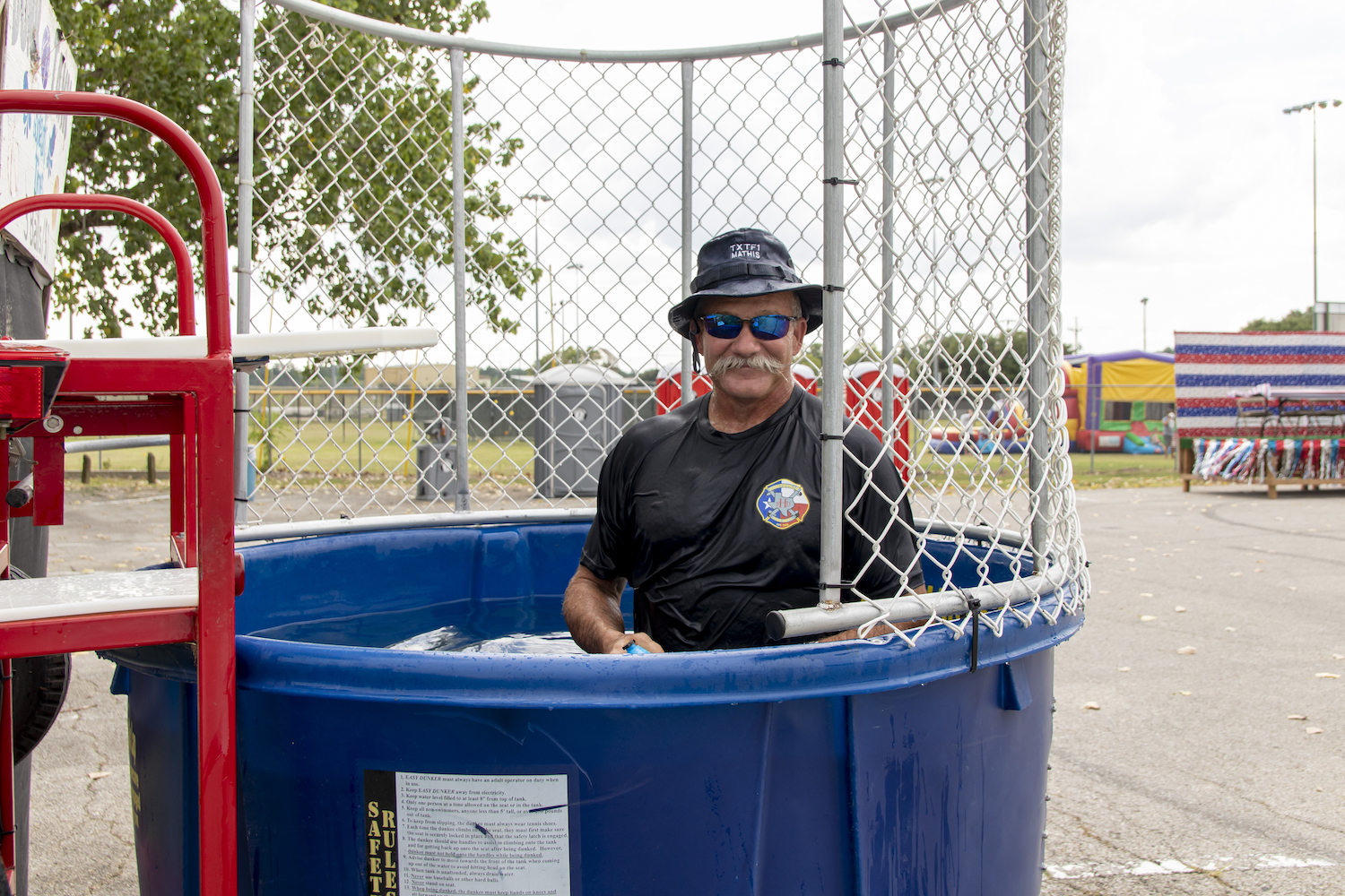 Local celebrities such as Aron Kulhavy (City Manager), Sam Maisel (Assistant City Manager), Penny Joiner (Parks and Rec Director) and Greg Mathis (Fire Chief) took turns sitting in the hot seat to get dunked! Taking advantage of the local figures’ goodwill, many people took the opportunity of using their hands to hit the target.