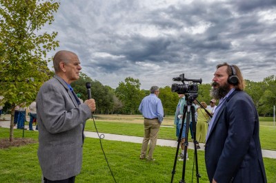 …with City Manager Aron Kulhavy; Steering Committee Chair Chris Tyson; Parks Advisory Board Chair Nate Grigsby; Community Praise Ministry Founder Vanetta Mills; Parks and Leisure Director Penny Joiner; former Parks Director Joseph Wiggs; long-time Parks employee George Perry; Mayor Andy Brauninger; Council Member Deloris Massey; and architect Charles Burditt speaking at the event.