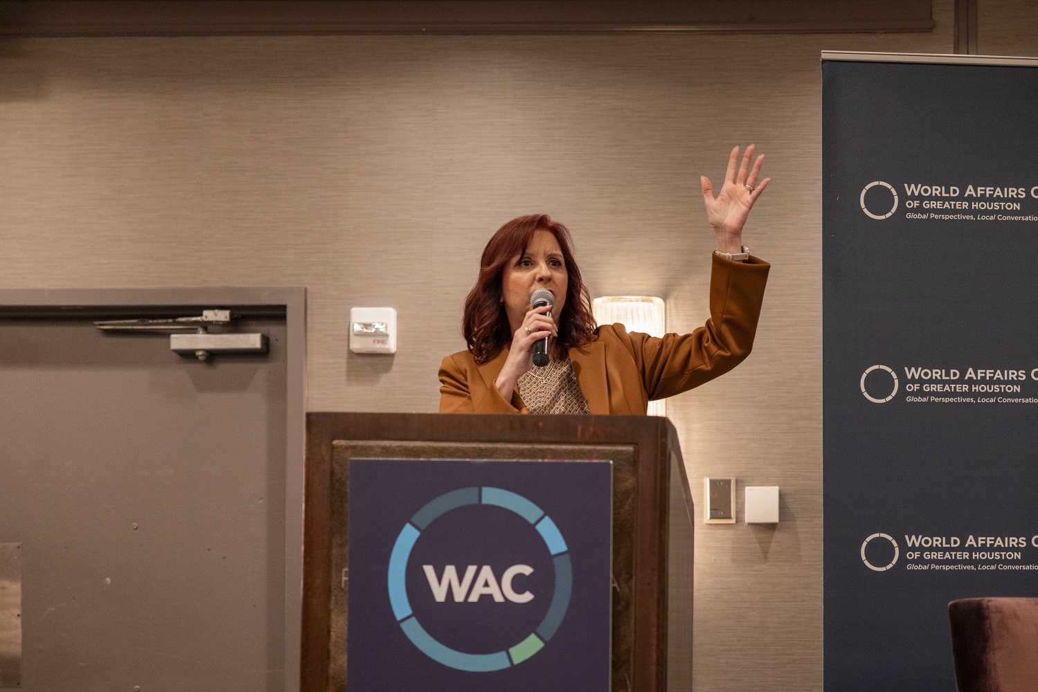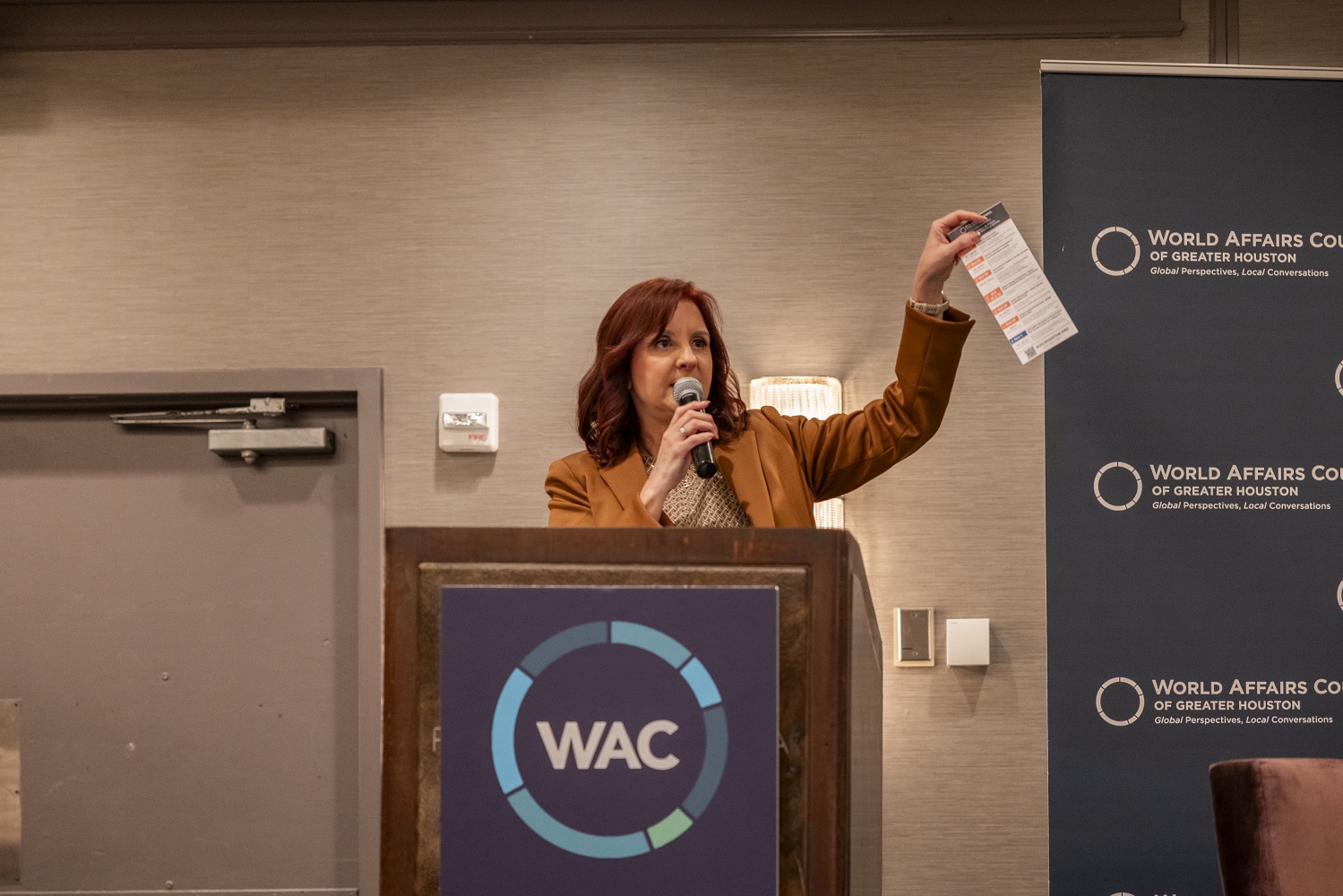 Maryanne Maldonado, the CEO of the World Affairs Council (WAC), started off the evening by emphasizing the importance of gatherings such as these. Through this, she gave LEAP a shoutout, saying;”Making the drive from Huntsville to Houston is a true commitment to education.”