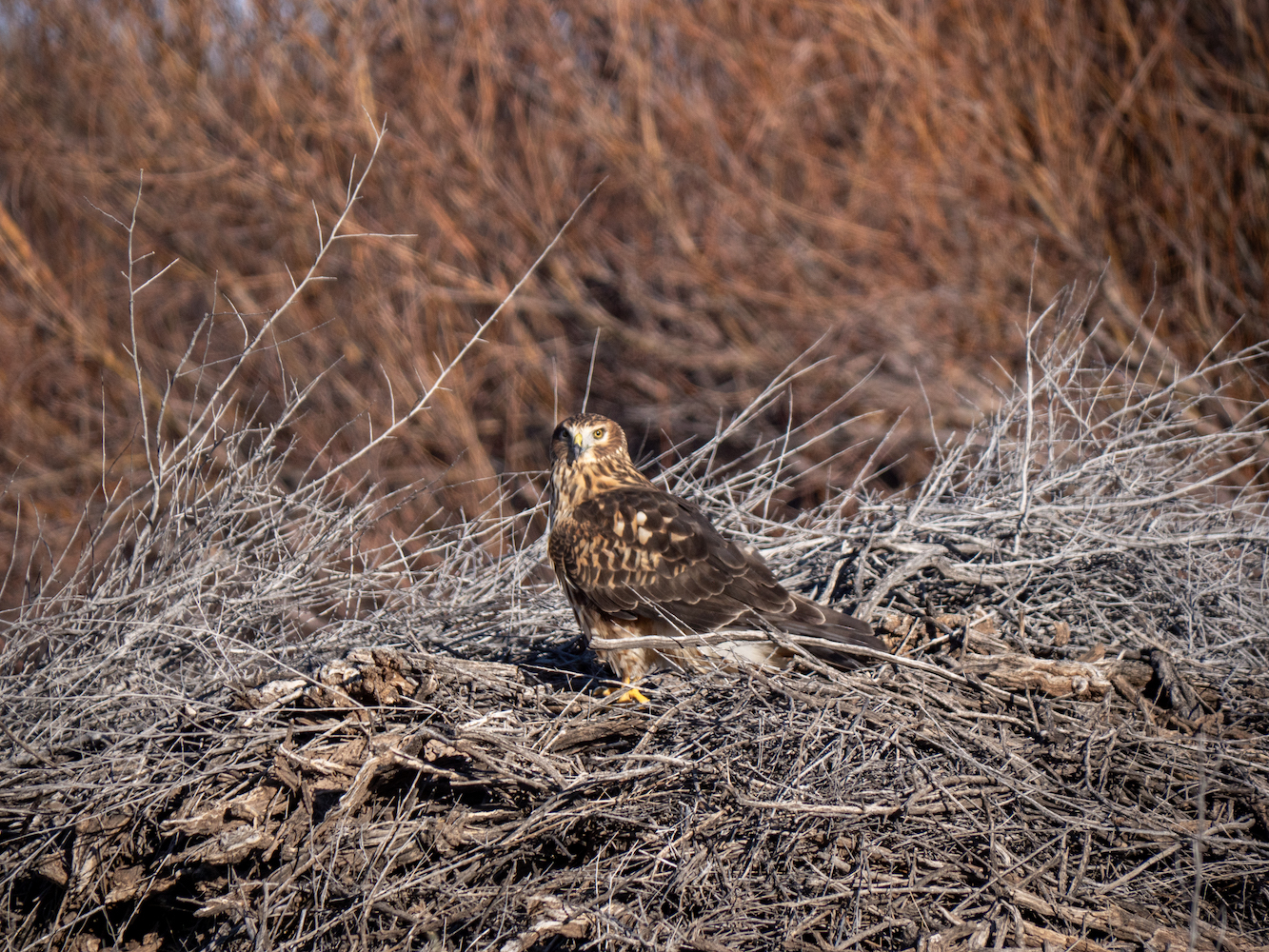 What was most rewarding to capture was a lone Bald Eagle perched atop a tree trunk, scanning the horizon for its next meal.