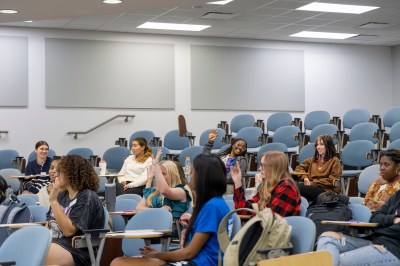 A new semester means another collaboration between the LEAP Center and the Freshman Leadership Program. And this year, the two offices decided to do a Simulated Voir Dire, giving them a broad overview of the jury selection process. And so it was that Associate Dean Lindsay Lauher, FLP Program Assistant Dante Tamez, Professor Mike Yawn, and the LEAP Center’s Sarah-Hope Carter came to be pretend lawyers for a day, along with 30 promising leaders who participate in the Freshman Leadership Program.