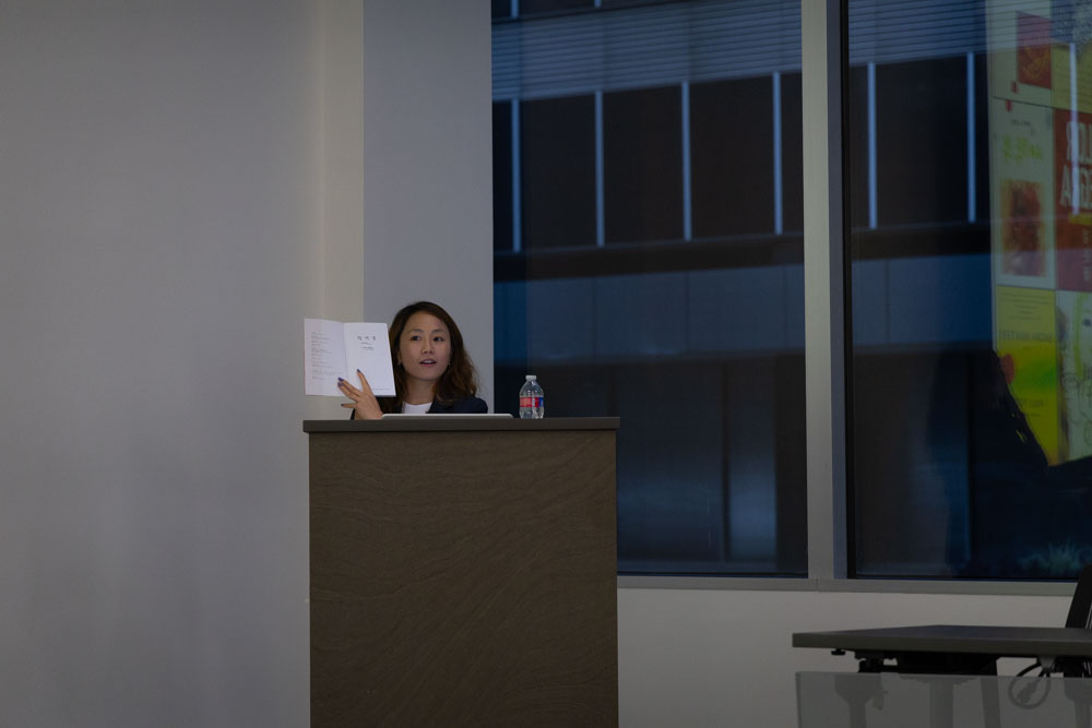 One of the most intriguing aspects of Choi’s lecture was her discussion of the intersection between Korean and Latin American literature. She broke down immigration patterns and found that many Koreans migrate to Latin America, leading to a rich exchange of cultures and literary traditions between the two regions. It was here that she provided many instances of this intersection of cultures, such as literary magazines, short stores and poetry, and novels. Professor Choi even brought a personal copy of one of these books, which was translated in both Korean and Spanish. Depending on which way the book was flipped, you could choose which language to read!