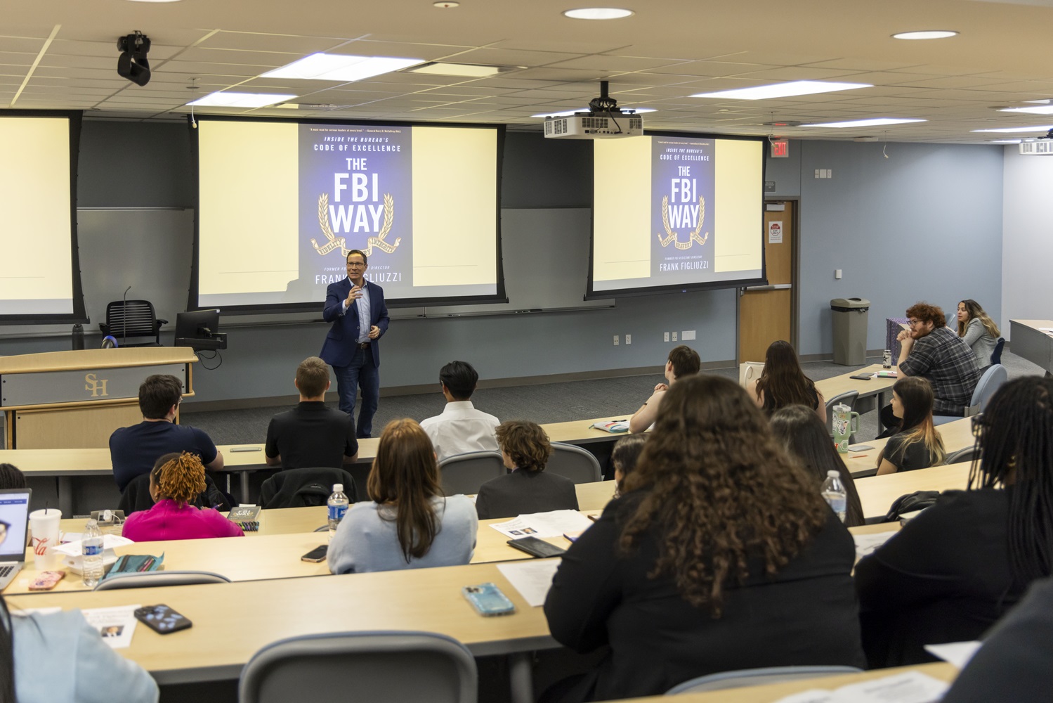 This week’s meeting was a unique one for the Pre-Law Society; the meeting was not only open to current members but also to everyone on campus! There was a reason for this unique approach–we had a unique speaker, Frank Figliuzzi, who is not only an attorney, but also an author and the former Assistant Director of the FBI.