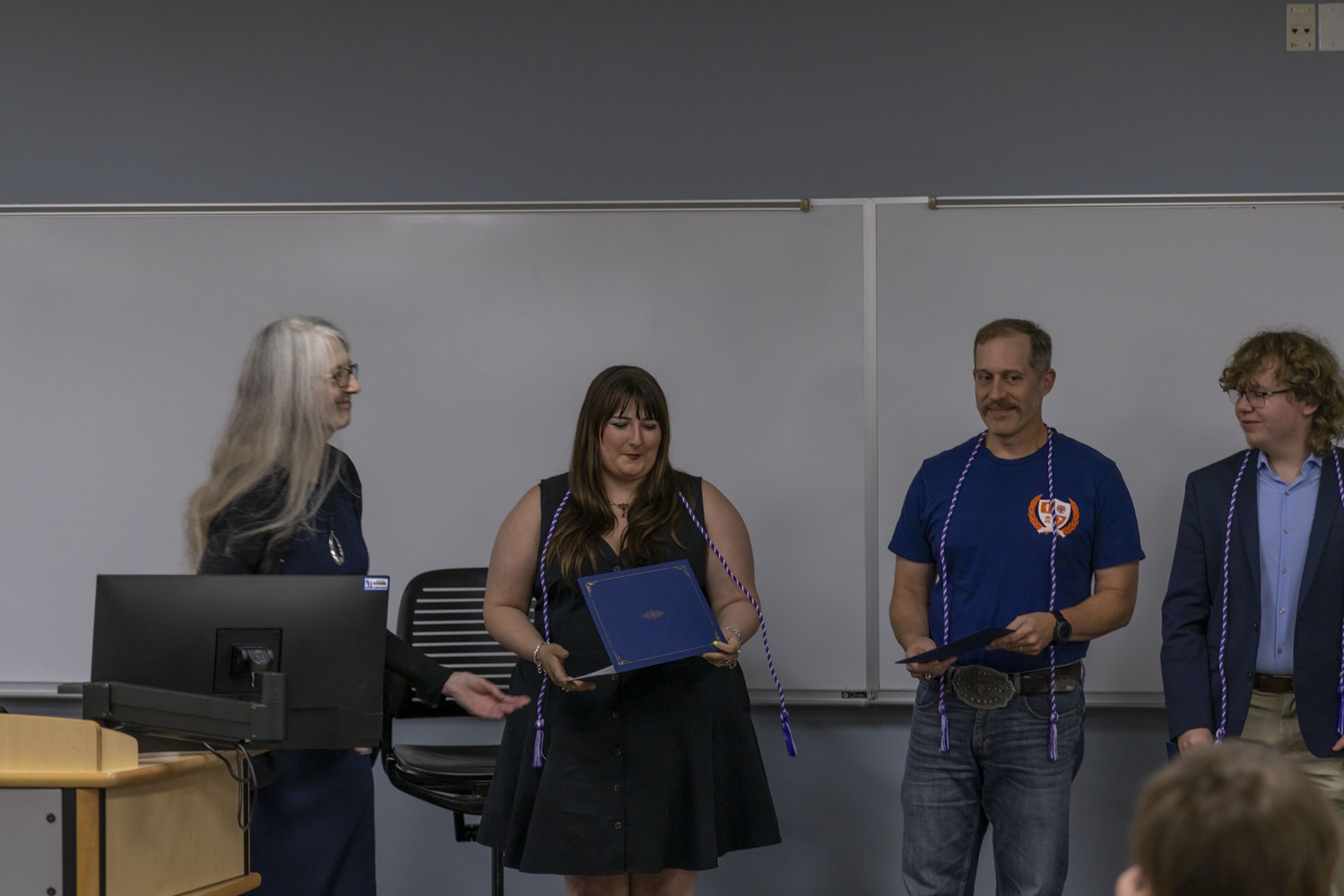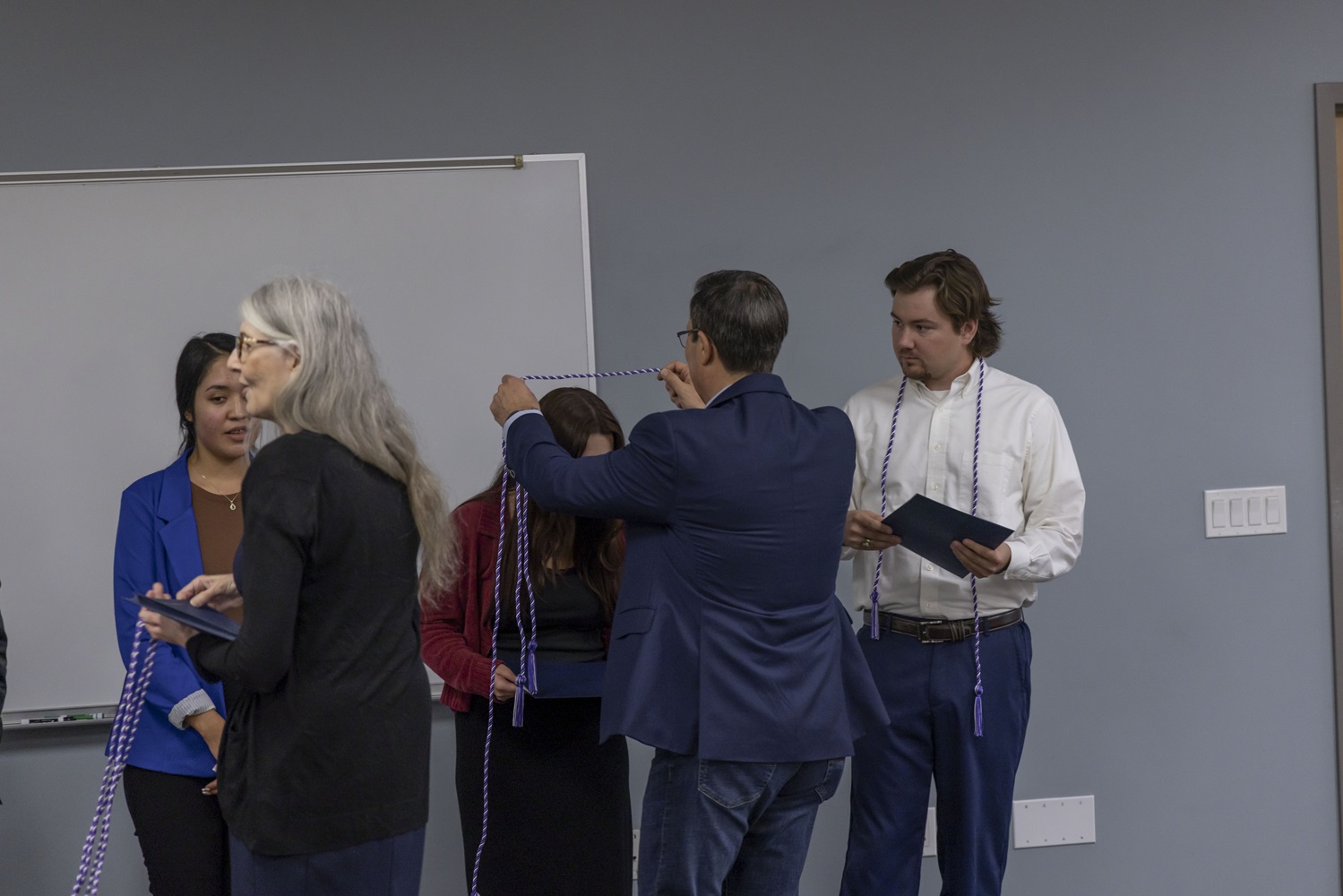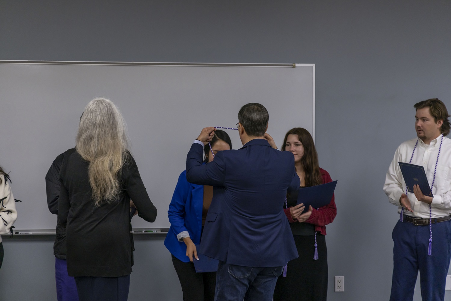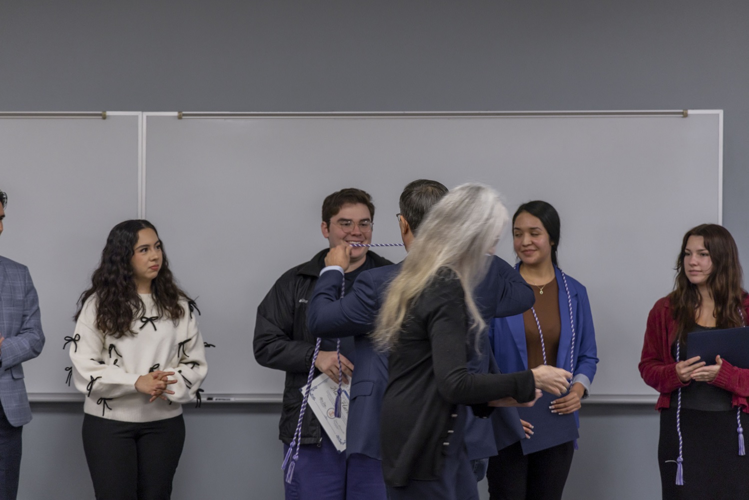After Mr. Figliuzzi’s presentation, the meeting continued with the cord ceremony for this semester’s graduating seniors. Making it more special, Mr. Figliuzzi corded the seniors while Ms. Loveall gave them their certificates.