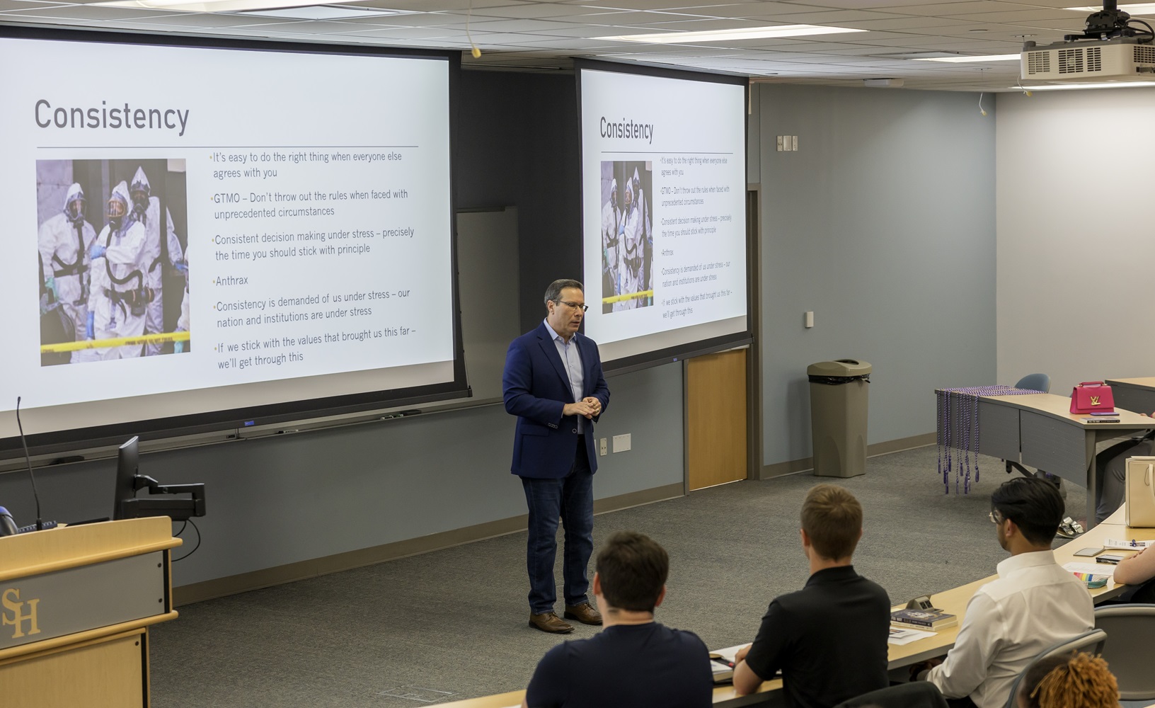 He finished his lecture with a word of advice to prospective law students: “start viewing yourself as a leader now.” As I looked around the room, I was sure that this advice was impactful to all.