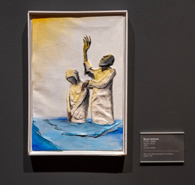 A newfound artist we enjoyed was Benny Andrews, although the pieces we respectively enjoyed differed. Andrews had various styles and mediums in this gallery, which made for an interesting sample of his work. Chrissy liked a piece called Destiny, Destruction, and Despair…