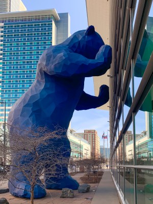 The bear, a creation of the late artist (and art professor) Lawrence Argent, is titled “I See What You Mean” and was installed in Denver in 2005. Over the past two decades, he has become a symbol of Denver.