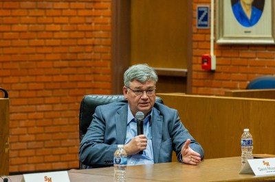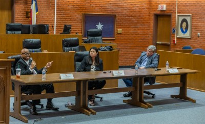 The Sam Houston State University Center for Law, Engagement, and Politics recently partnered with the SHSU Criminal Justice Department to host a CJ Real Talk event. With approximately 50 students in attendance and moderated by Professor Mike Yawn, the panel featured Montgomery County Chief Prosecutor Darla Faulkner, retired Lieutenant Criminal Investigator for Harris County Paul Smithers, and 12th District Court Judge David Moorman.