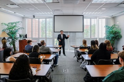 But it was principles taught to him by his parents, he explained, that guided him from his humble beginnings as one of eight children born to a construction worker through the highest levels of government service. Gonzales underscored the guiding principles that shaped his path, particularly the importance of “showing up,” his father both literally and figuratively taught him, which he emphasized as a key tenet of the work ethic he hopes to instill in any student.