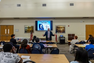 This year’s immigrant roster was impressive, with two professors, professional staff from the College of Osteopathic Medicine, two janitorial staff, and eight other local residents. This list included: Dr. Elisa Herrmann, Jose Arroyo, Maria Elena, Junior Jepjio, Alexandra Herrera, Nancy Vasquez, Iris Santos, Veronica Garcia, Dr. Juan Diego Daza, Nancy Martinez, Marisa Pimental, Carmen Cedeno, and Gregoria McGuire. McGuire passed her citizenship test during the course, and she continued to attend the course to work on her writing and learn more about US history and government.