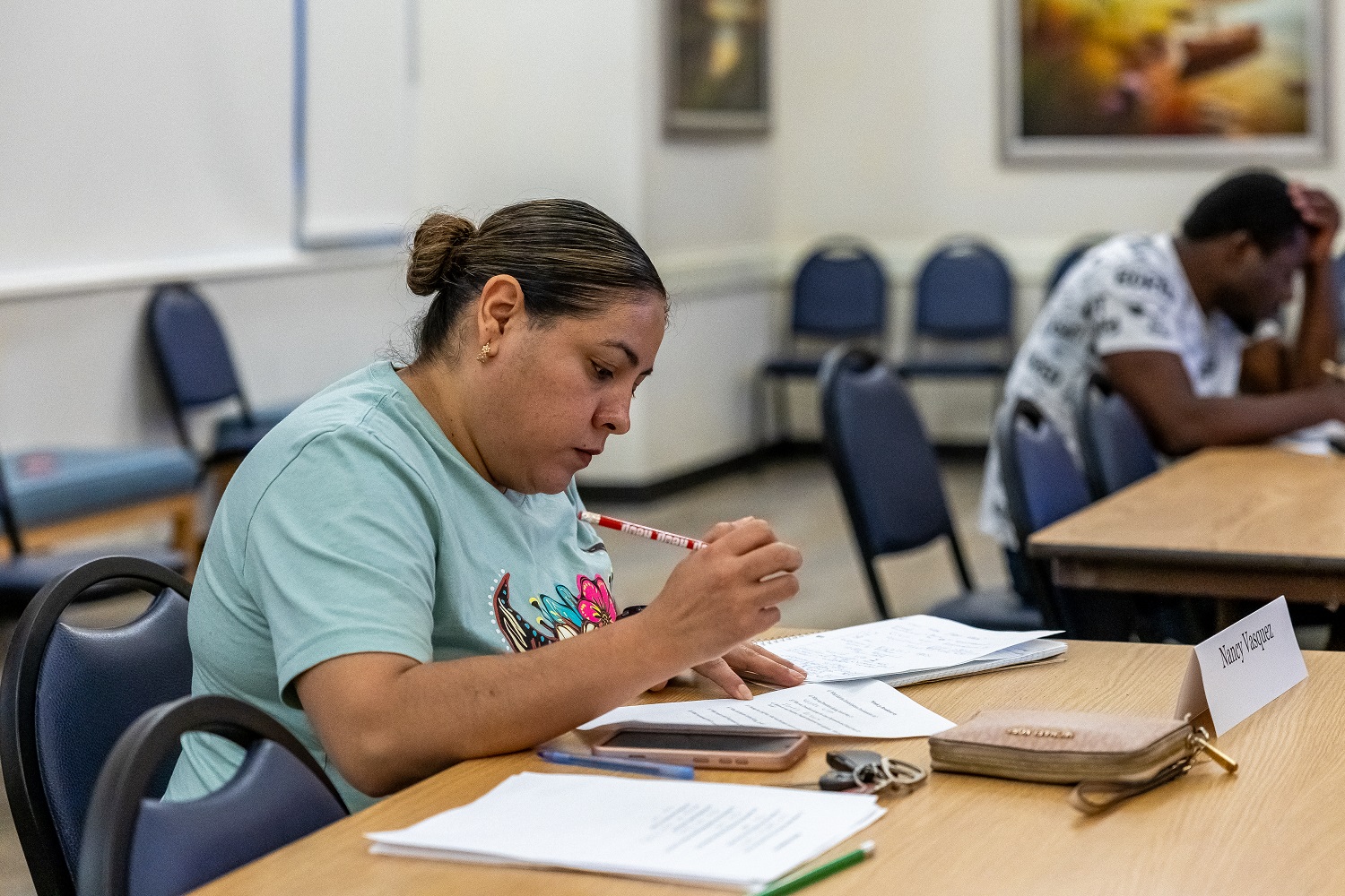 While the volunteers’ bilingual skills are helpful, almost all of the immigrants are required to take the test in English (there is an exception for those who are 55 years old and who have been in the country for 20 years), so we try to avoid extensive communication in Spanish.