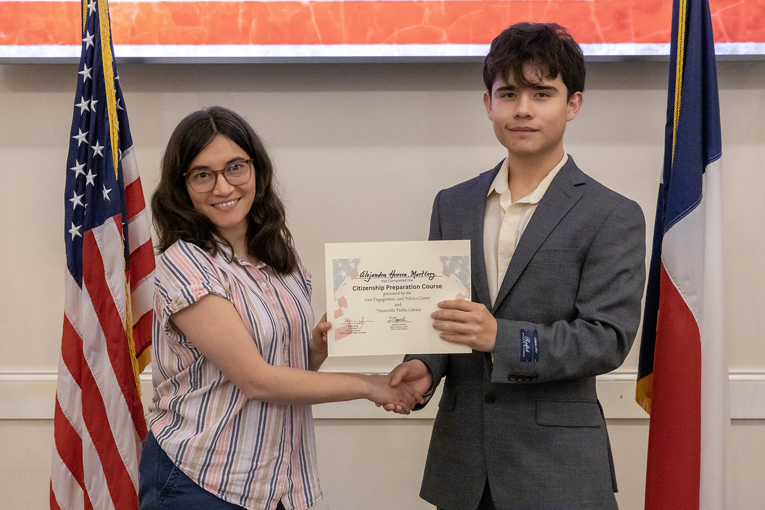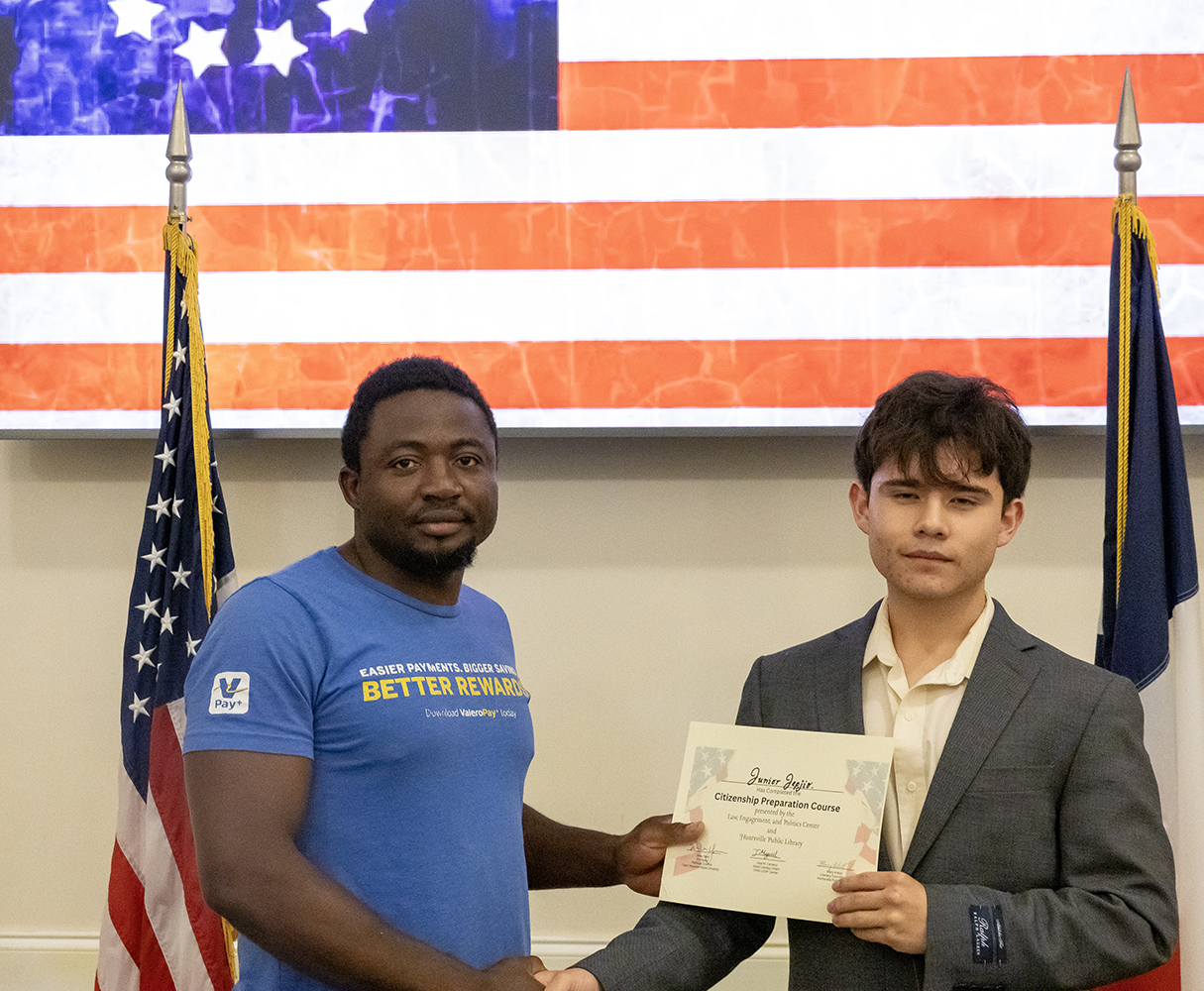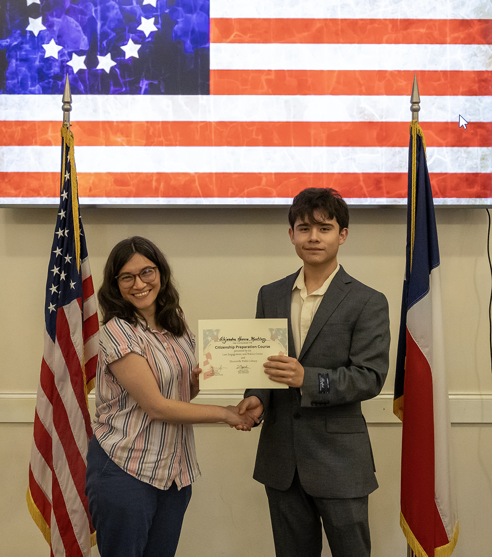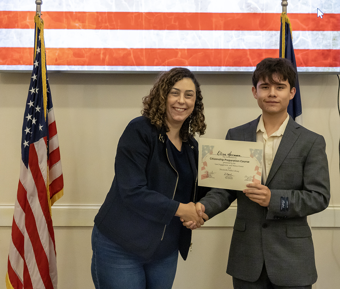 Each year, the Center for Law, Engagement, And Politics partners with the Huntsville Public Library, hosting a five-week “Citizenship Preparatory Course” for local documented immigrants. This year, with the help of intern Jose Carreno, Library Literacy Coordinator Mary Kokot, and three unpaid student volunteers, we were able to assist 13 local immigrants on their journey to citizenship.