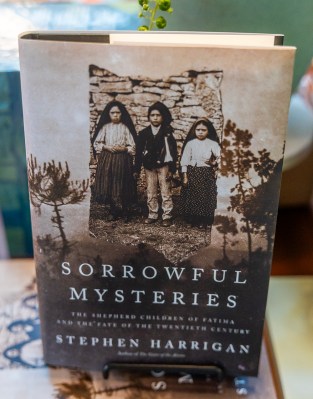 Stephen Harrigan, best-selling novelist and non-fiction author, is a veteran of book-talks. As such, he was able to manage a less-than-smooth moderated discussion of “Sorrowful Mysteries: The Shepherd Children of Fatima and the Fate of the Twentieth Century,” while still providing humor, interesting anecdotes, and his usual graciousness to a full house at First Light Books.