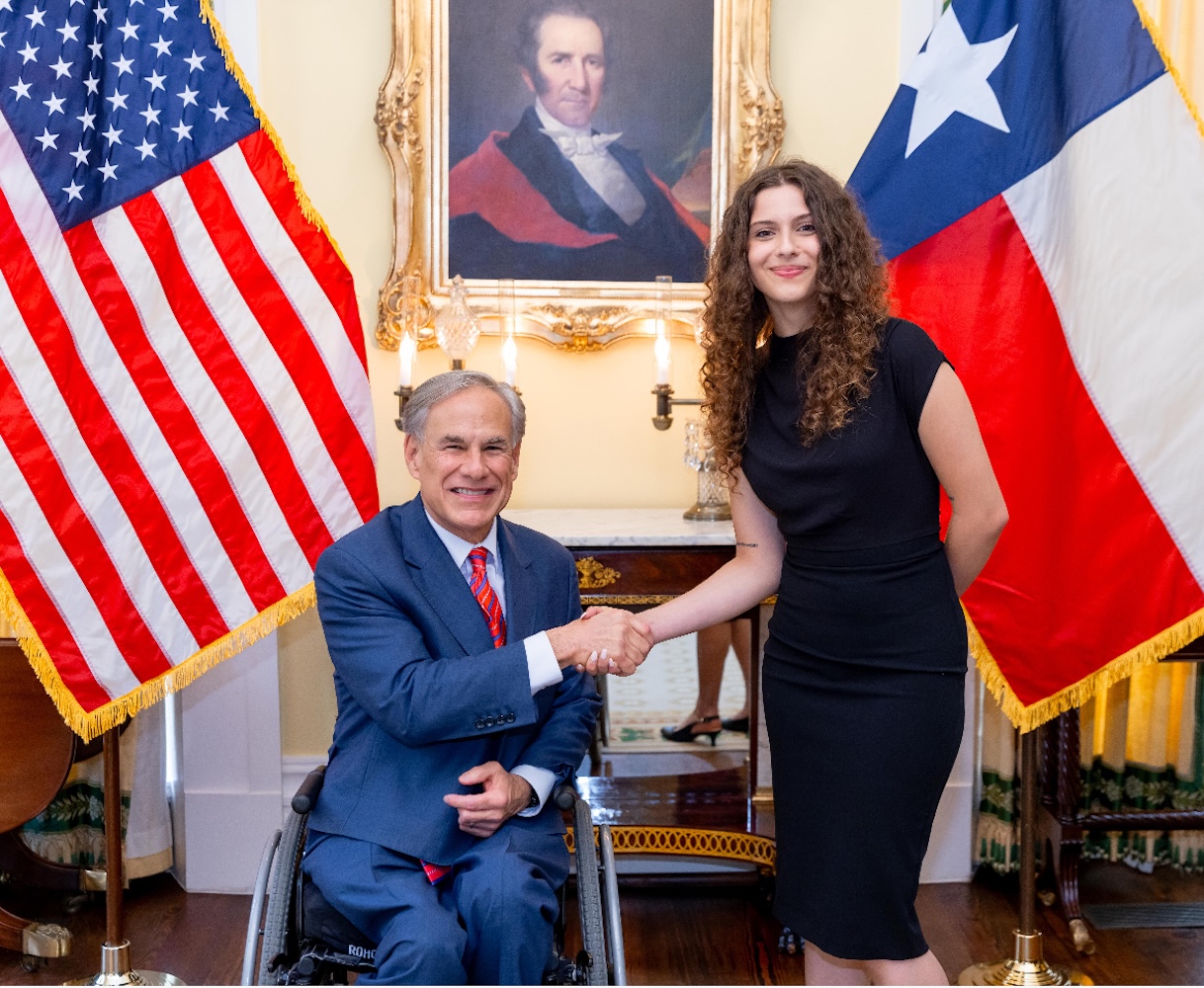 I’ll admit I was a little photo-shy walking through the mansion, but that didn’t stop a few photos from happening. To my surprise, I got to greet Governor Abbott again and take a quick photo with him—inside his house, no less. In that moment, I felt an overwhelming sense of gratitude. Being appointed as a student regent during my undergrad was an incredible opportunity, and I’ve felt supported at every level of my college experience. That support made moments like this possible.