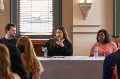 Martin steered the conversation to the first major skill all panelists agreed that LEAP help them develop: navigating interviews. Ademide Adedokun emphasized the importance of bouncing back, describing one of her early setbacks, and how she learned from it. Melva Gomez encouraged students to mitigate their weaknesses by working to improve in weak areas, while developing their natural strengths. All agreed that internships are one of the key ways that these strategies can be implemented.