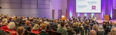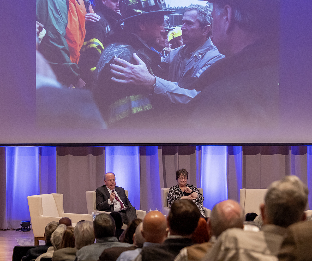 …and photographer Mark Burns before even entering the auditorium! Both were generous with their time, discussing their favorite stories concerning President Bush.