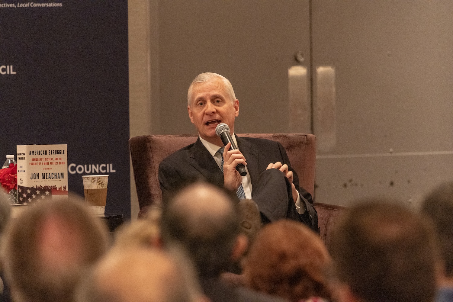 …Meacham discussed American political history, getting into the nitty gritty of the division of party lines with witty humor and anecdotes.