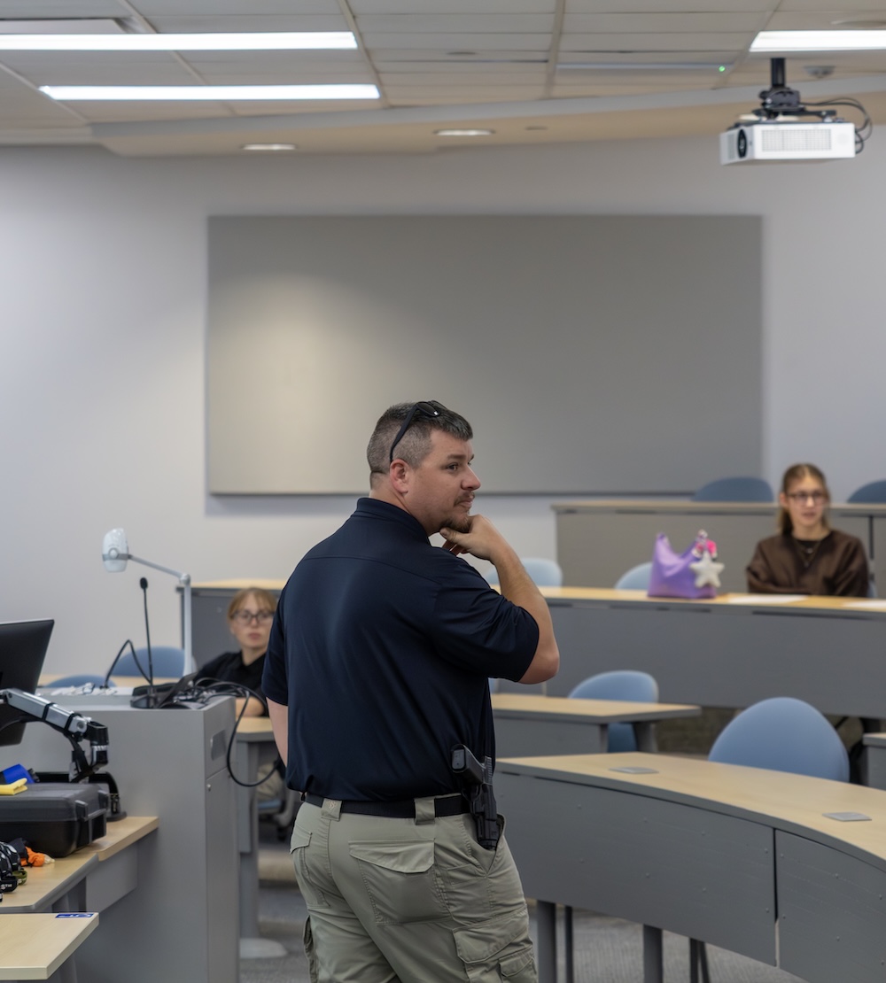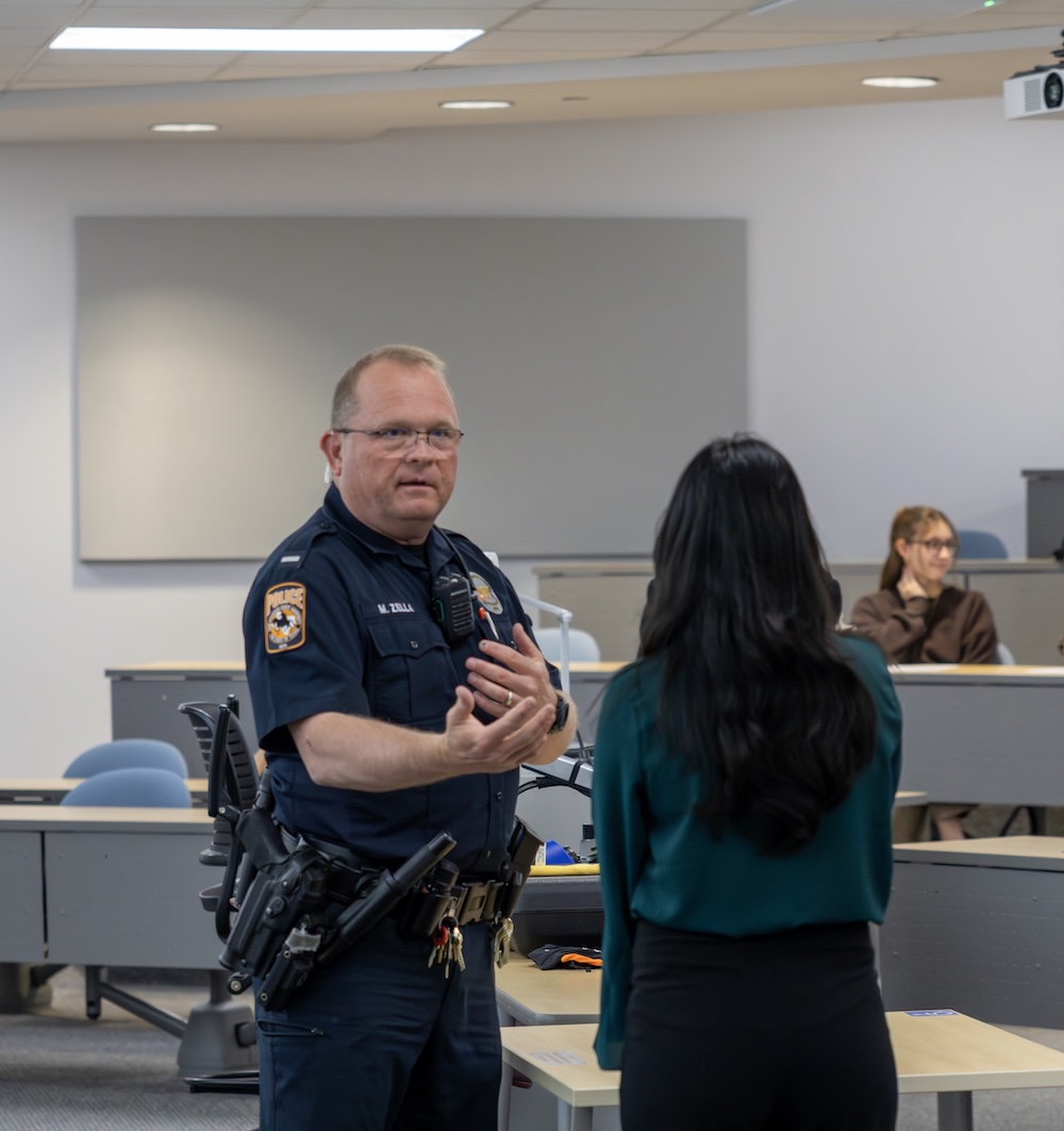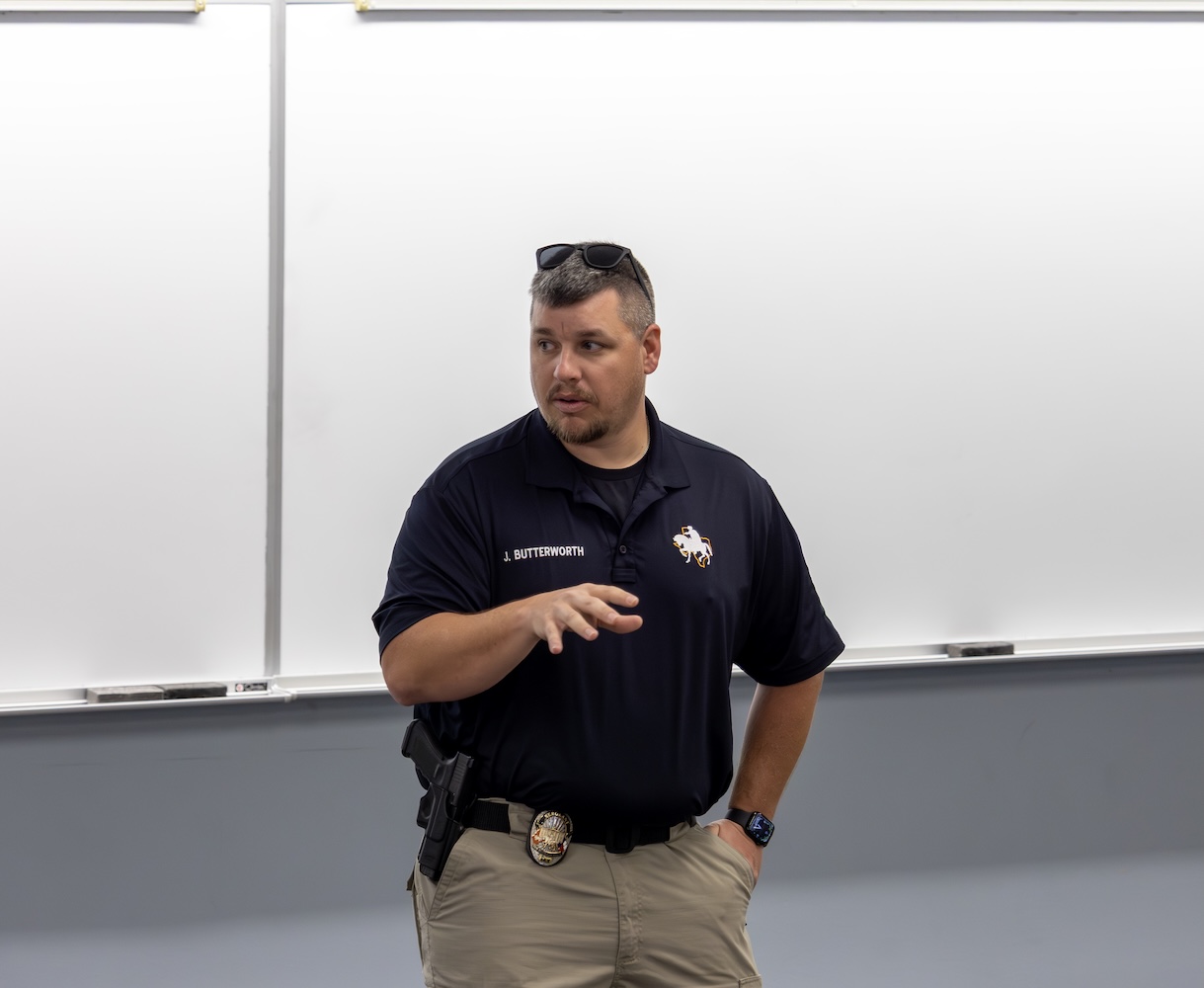 What made this meeting stand out was how interactive it was. Rather than talking at us, they walked us through real scenarios, ones that felt uncomfortably realistic. Two students acted out a situation at a house party: one over 21, one underage, a drink left unattended. At first, it seemed harmless. But as Butters and Zella broke it down, the legal implications became clear, showing how quickly a casual decision can turn into a charge. That theme carried throughout the night: small choices, real consequences.