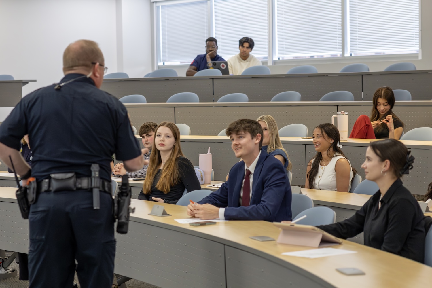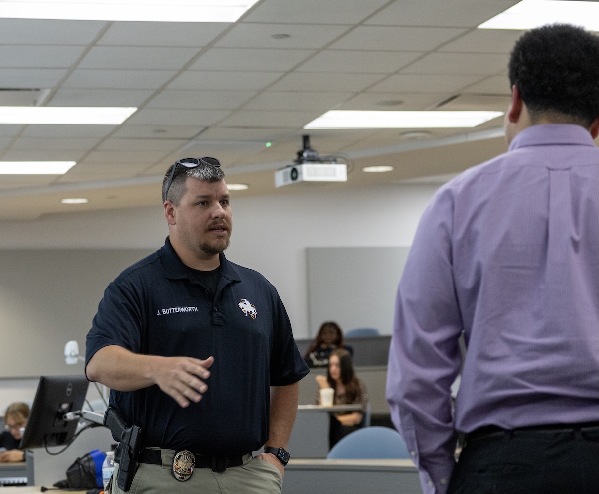For our second meeting of the semester, Pre-Law Society had the pleasure of hearing from Sam Houston State University’s Police Department. Rather than the traditional typical guest speaker, lecture-style, format, we engaged in some fun activities that are both relevant to the legal field, but also college students, especially when it comes to alcohol, substances, and decision-making. Olivia Discon briefly introduced Sergeant Butterworth (“Butters”) and Lieutenant Zella, and Professor Mike Yawn.